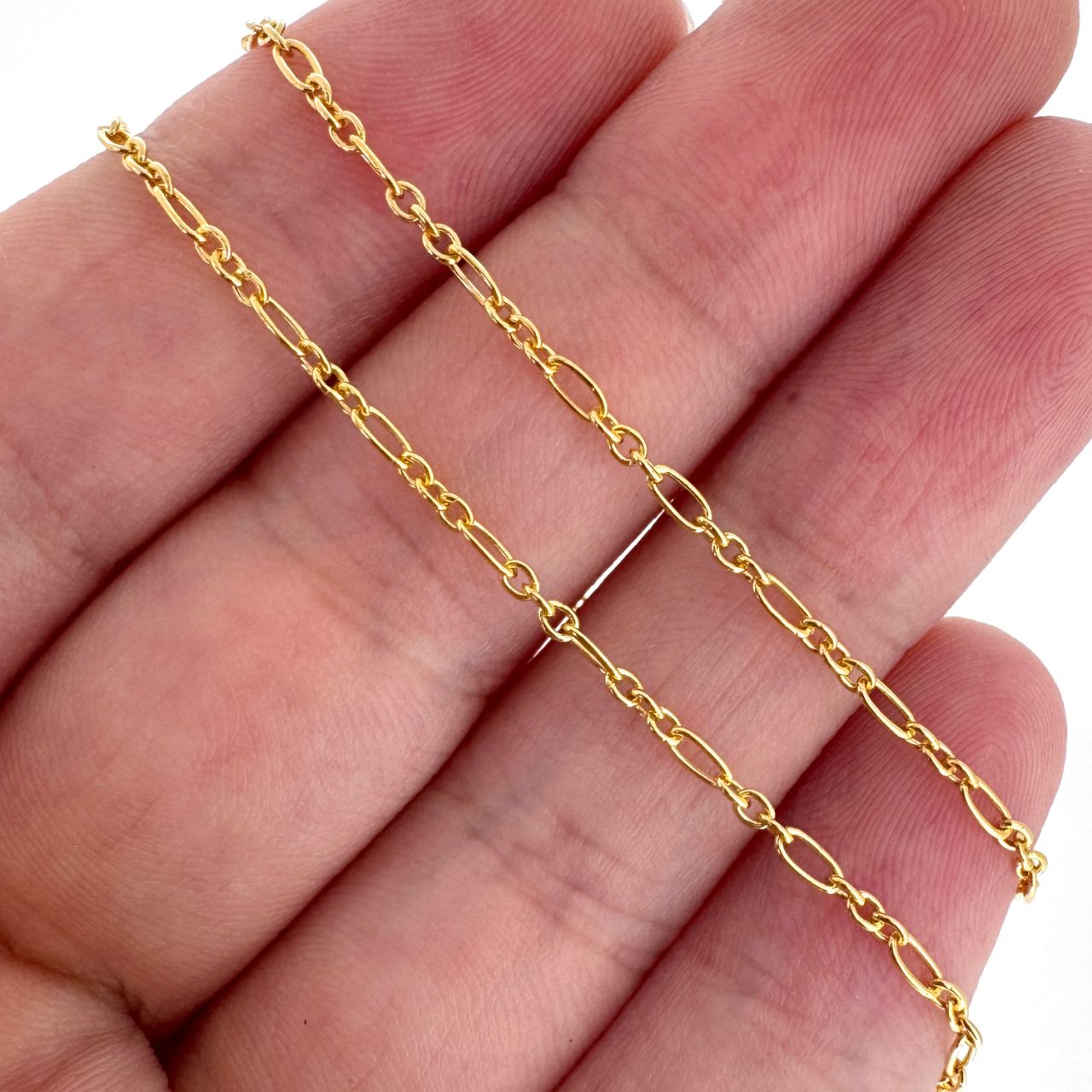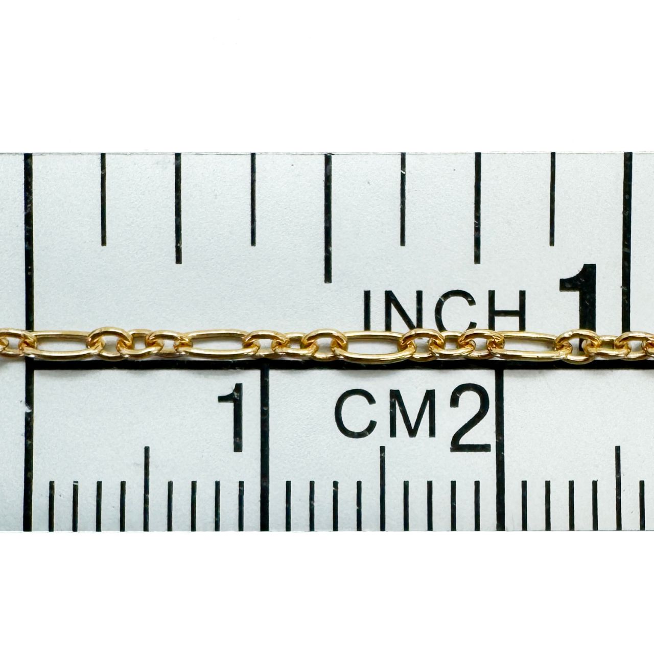 Best Seller Add to compare list 1/20 14k Gold Filled Figaro 8 Cable Chain 4.3mm by 2.3mm (sold per foot) SKU : 101089GF 3.5mm by 2.3mm 12 links per inch Log In for Wholesale Prices