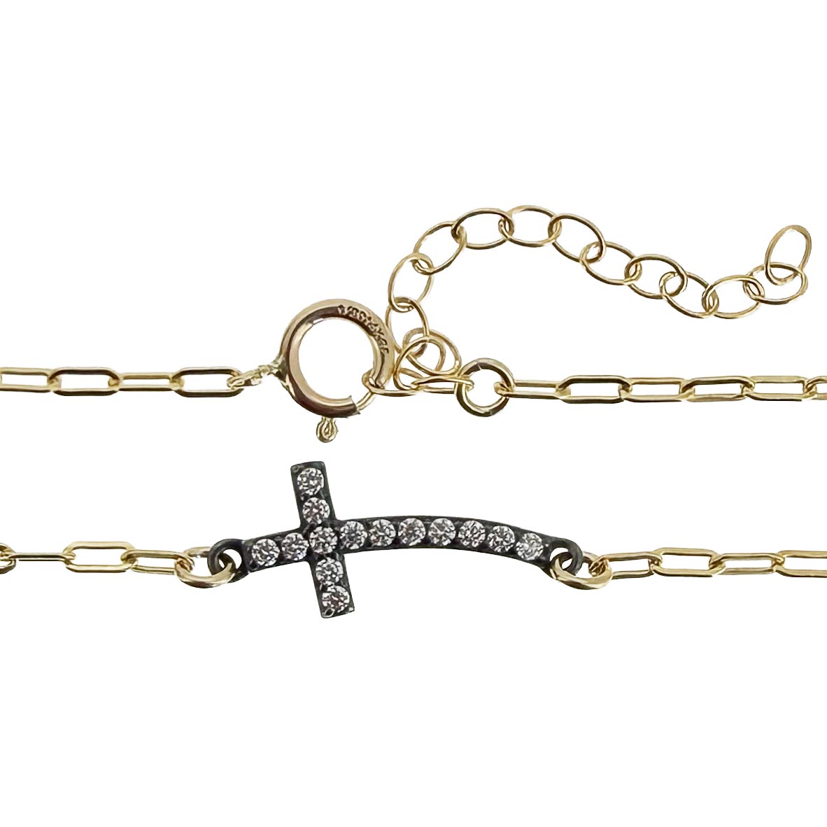 Style: Small Paperclip Chain with CZ Cross Connector