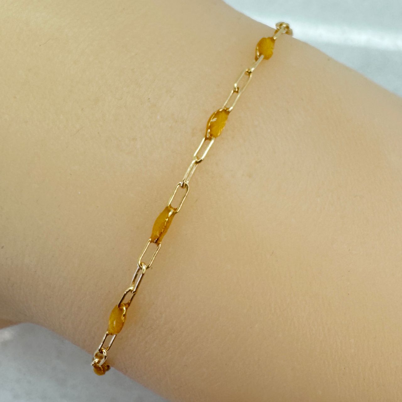 Style: Long Box Paperclip Chain with Green Enamel Links