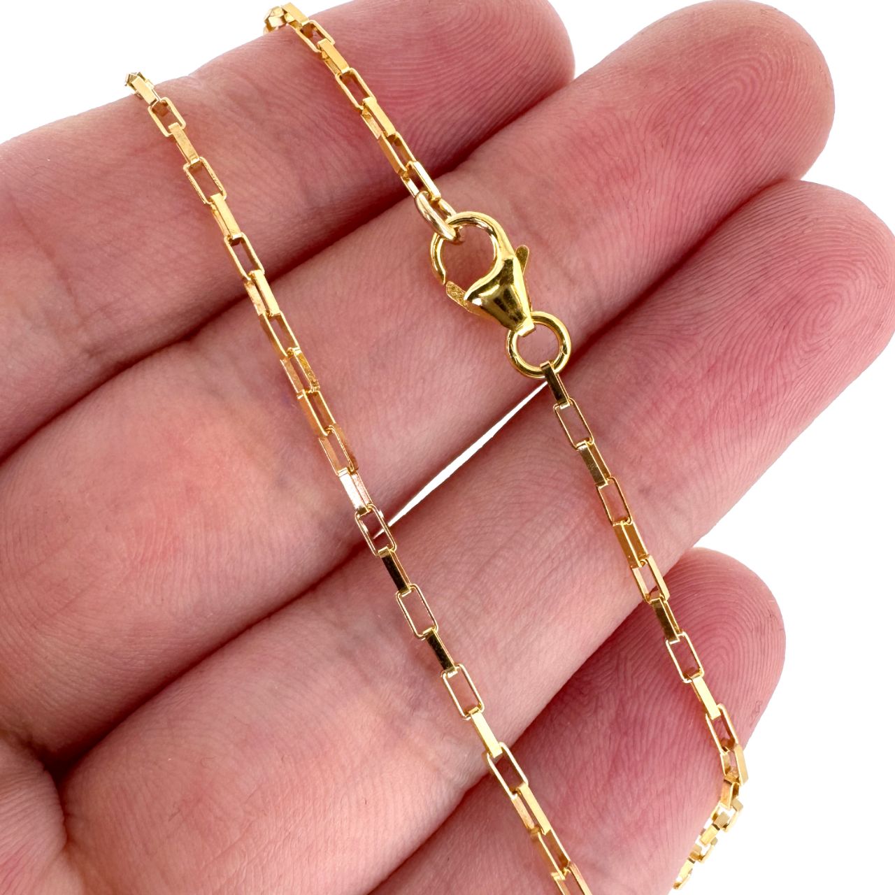 Add to compare list 22K Gold Over Sterling Silver Finished Chain - Small Box Chain SKU : 601011-VM Lengths: 7"- 36" Link size is 2.9 mm by 1.3mm Log In for Wholesale Prices