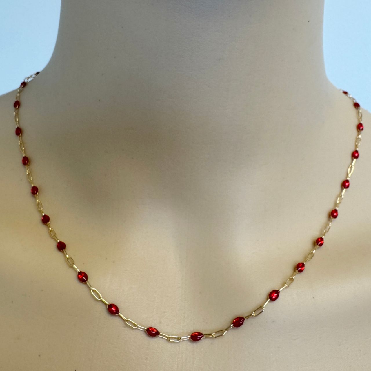 Best Seller Add to compare list 1/20 14K Gold Filled Long Box - 1+3 PaperClip Enamel Chain (Ruby Color) - 3.6mm by 1.6mm (Sold per foot) SKU : 101079GF-RUB July Birthstone color-Ruby. 8 links per inch Log In for Wholesale Prices