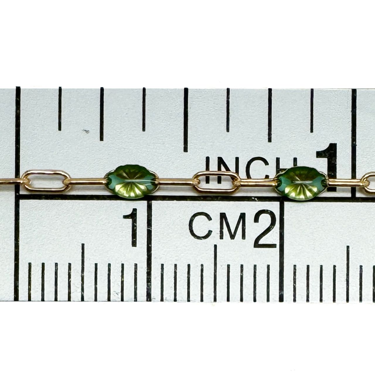 Add to compare list 1/20 14K Gold Filled Long Box - 1+3 PaperClip Enamel Chain (Emerald Color) - 3.6mm by 1.6mm (Sold per foot) SKU : 101079GF-EMR May birthstone Emerald color. 8 links per inch Log In for Wholesale Prices