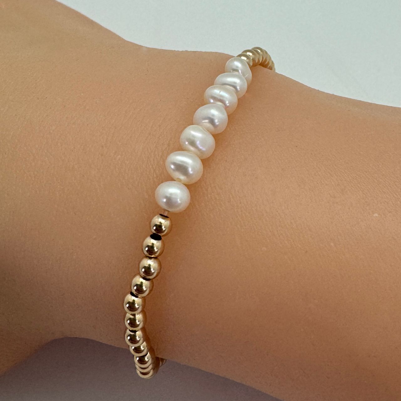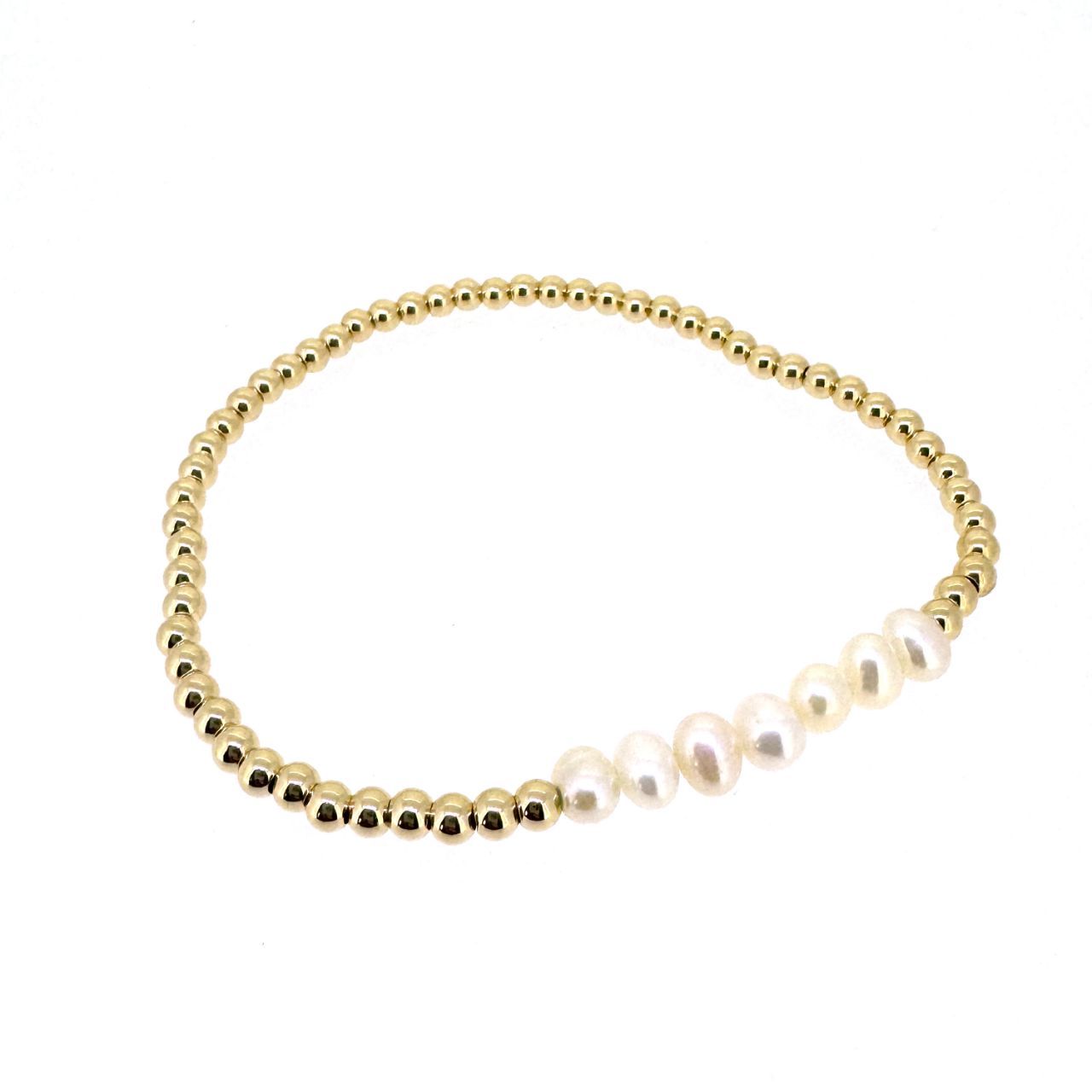 Add to compare list 1/20 14K Gold Filled Smooth Beaded Stretchy Bracelet with Single Freshwater Pearls - 6.5" SKU : 721004GF Currently Available bead size: 3mm, 4mm, 5mm and 6mm Log In for Wholesale Prices