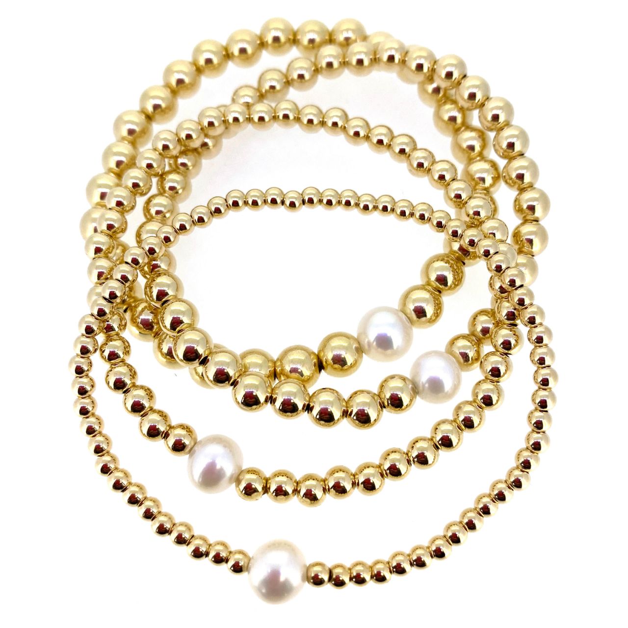 Add to compare list 1/20 14K Gold Filled Smooth Beaded Stretchy Bracelet with Freshwater Pearls - 6.5" SKU : 721003GF Currently Available bead size: 3mm, 4mm ,5mm and 6mm Log In for Wholesale Prices