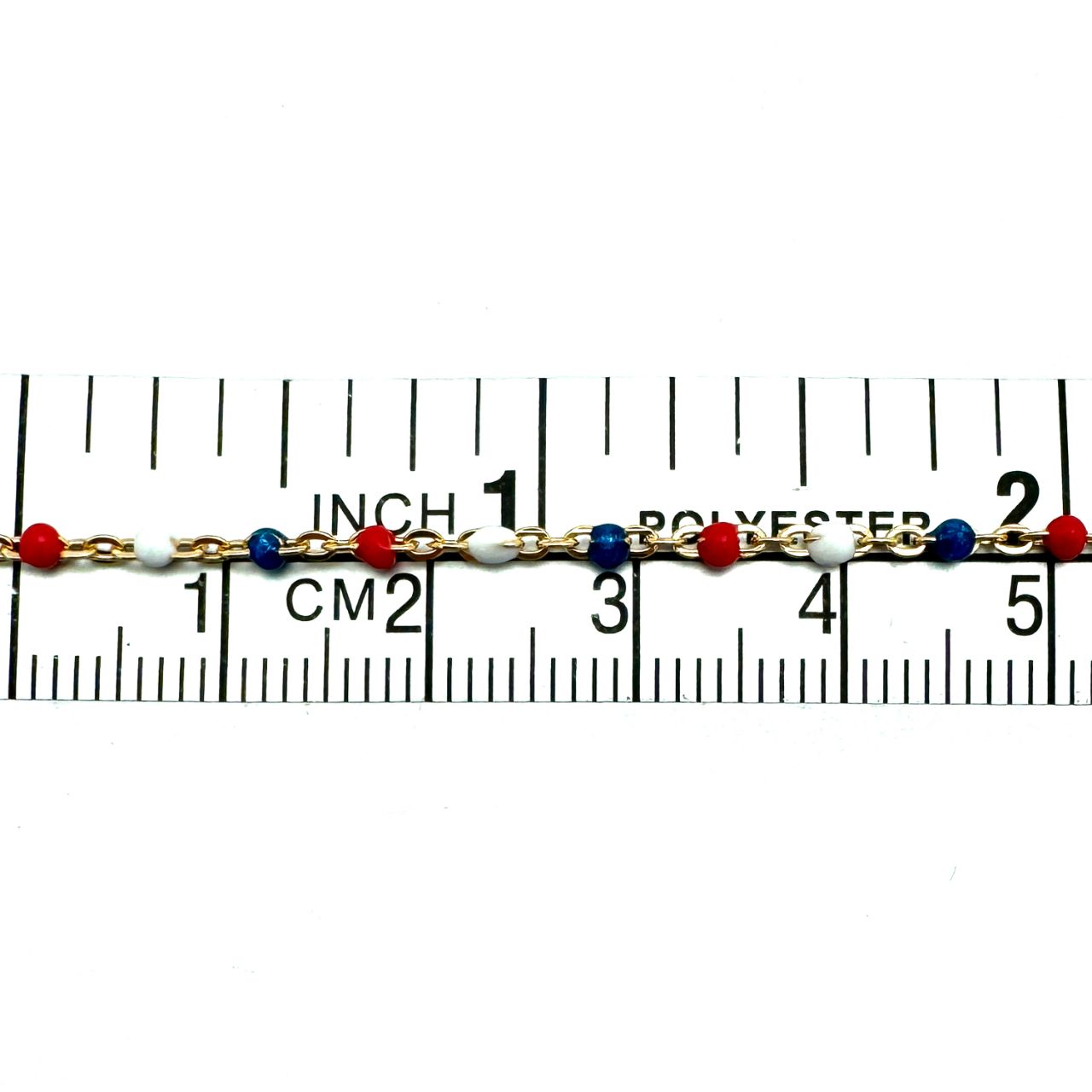 Add to compare list 1/20 14k Gold Filled Finished Adjustable Enamel Chain Jewelry - Cable Chain with Red, White, and Blue Enamel SKU : 650116GF One Size Fits Most Bracelet, Anklet, Or Necklace Log In for Wholesale Prices