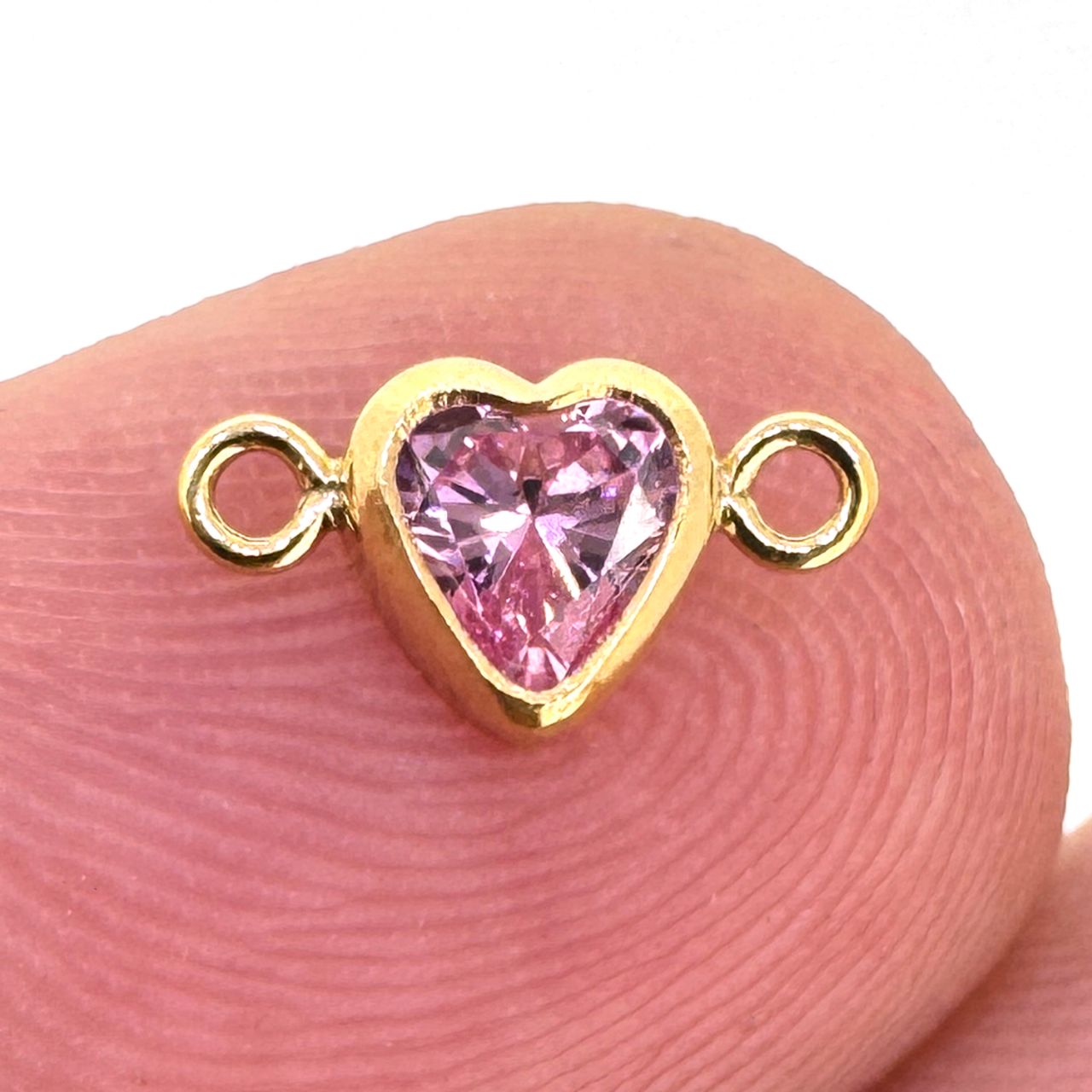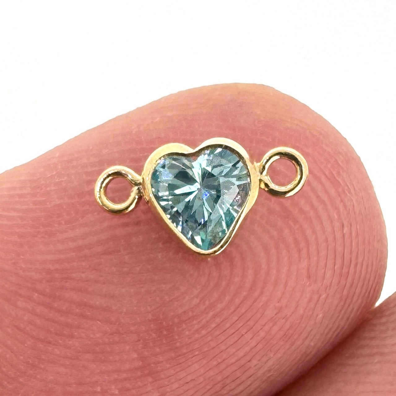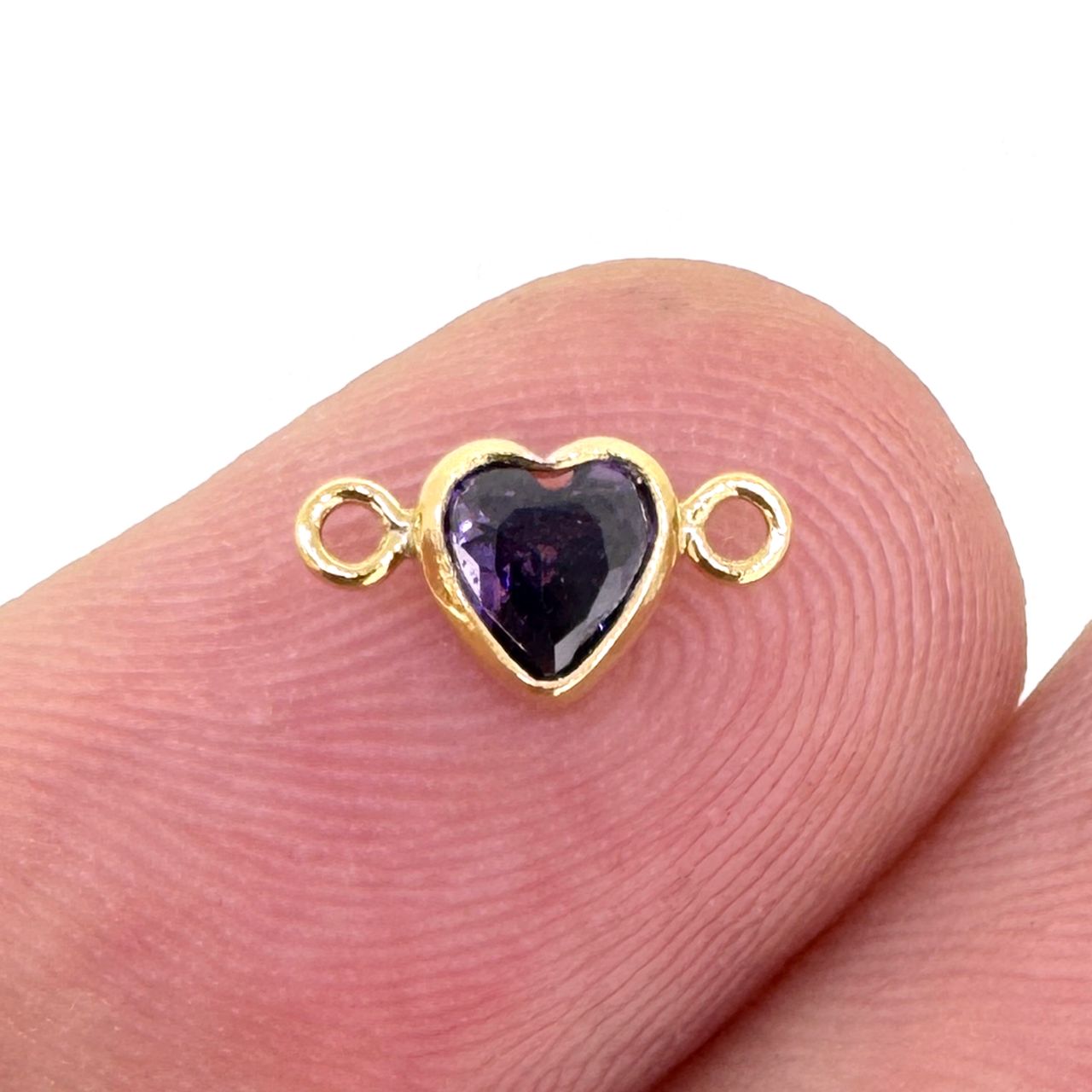 Best Seller Add to compare list 925 Sterling Silver Fancy Tiny Heart Shaped Birthstone Bezel Connectors - AAA CZ Stones - 4mm (sold per piece) SKU : 201409 Log In for Wholesale Prices