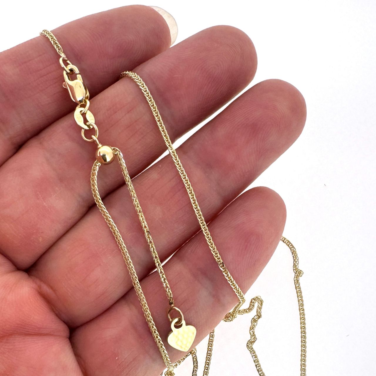 Add to compare list 14K Yellow Gold Necklace-Square Diamond Cut Wheat Chain-16", 18" or 20" SKU : 601324 0.8mm wheat chain- about 1.51grams -16", 1.73 grams - 18", about 1.85 grams -20" Log In for Wholesale Prices
