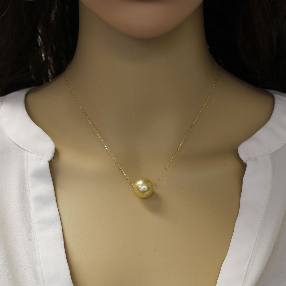 Add to compare list 14K Yellow Gold White South Sea Floating Pearl Necklace - 16" SKU : K17007 Pearl size: 12*12.5mm Log In for Wholesale Prices