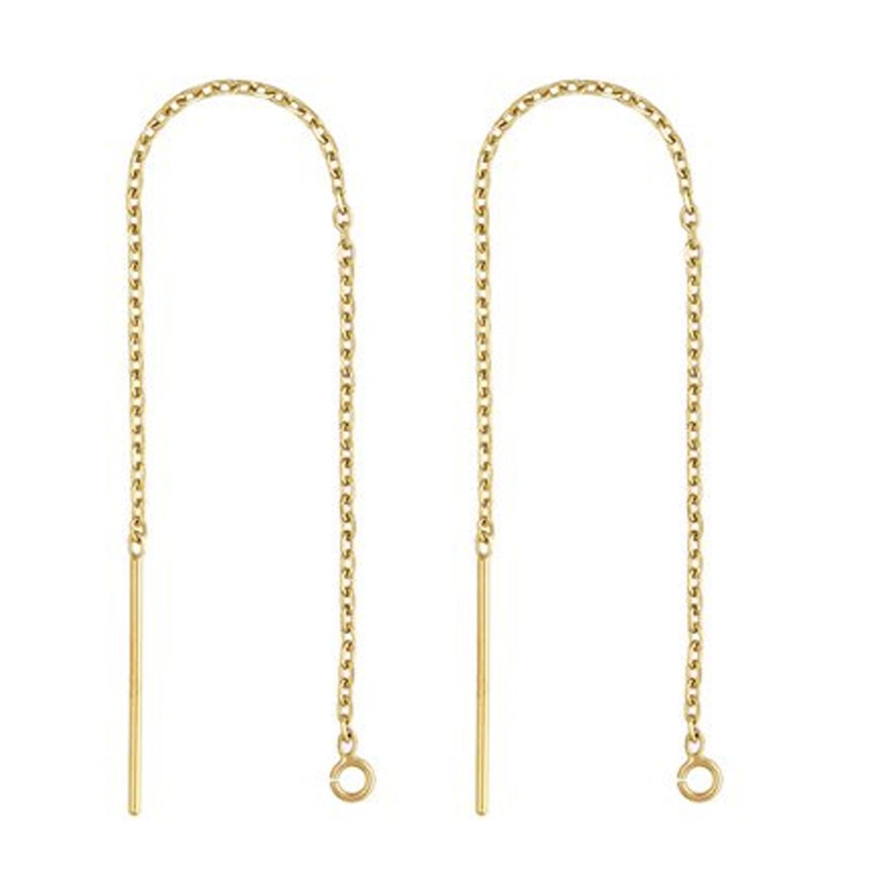 Material: 14K Yellow GoldSize: 0.6mm thick- the ring is 2.5mm wide - 1.3mm inner diameter, the length is approximately 80mm longGauge: 21 gauge (0.7mm)Style: Long thread earrings, tiny cable chainQuantity: 1 pair, 2 piecesUsage: Bottom ring is open