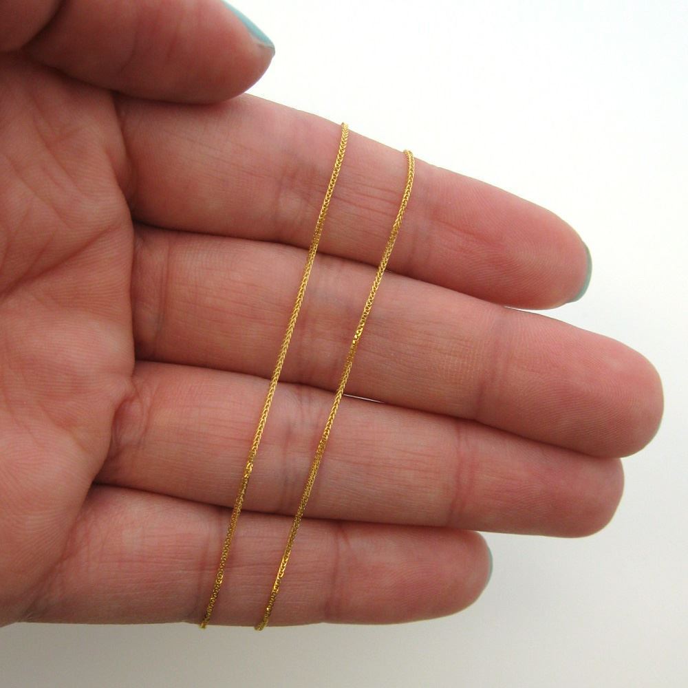 Material: 18KT solid yellow goldLength: 18"Size: .5 mm width Quantity: 1 necklace chain