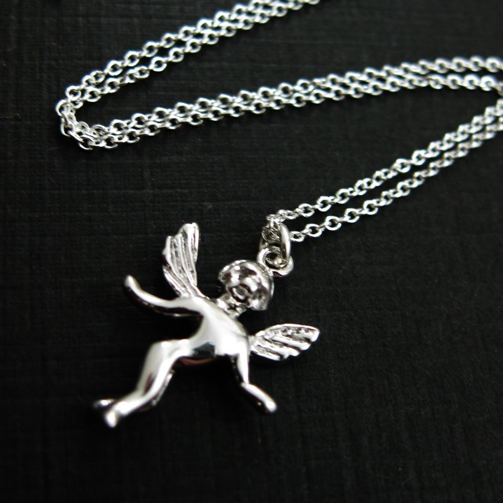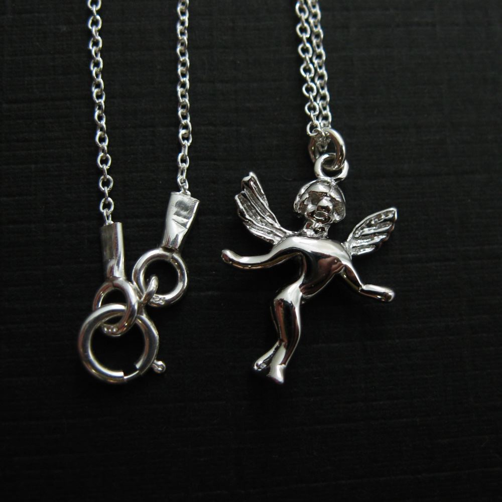 Sterling Silver Angel Charm Pendant Necklace (16-24 inch)