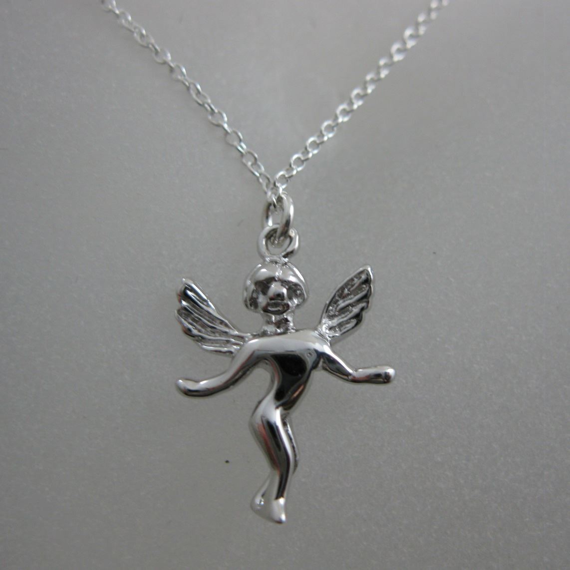Price: per 1 necklaceMaterial: Solid Genuine .925 Sterling Silver. Description: : Angel with open wings. Textured on both sides. Tiny plain cable link chain.Length: 16 to 24 inches. If you would like a different length please contact the seller. Charm Measurement: 17mm long, 15 mm long without ring, 13 mm wide and 2.5 mm thick