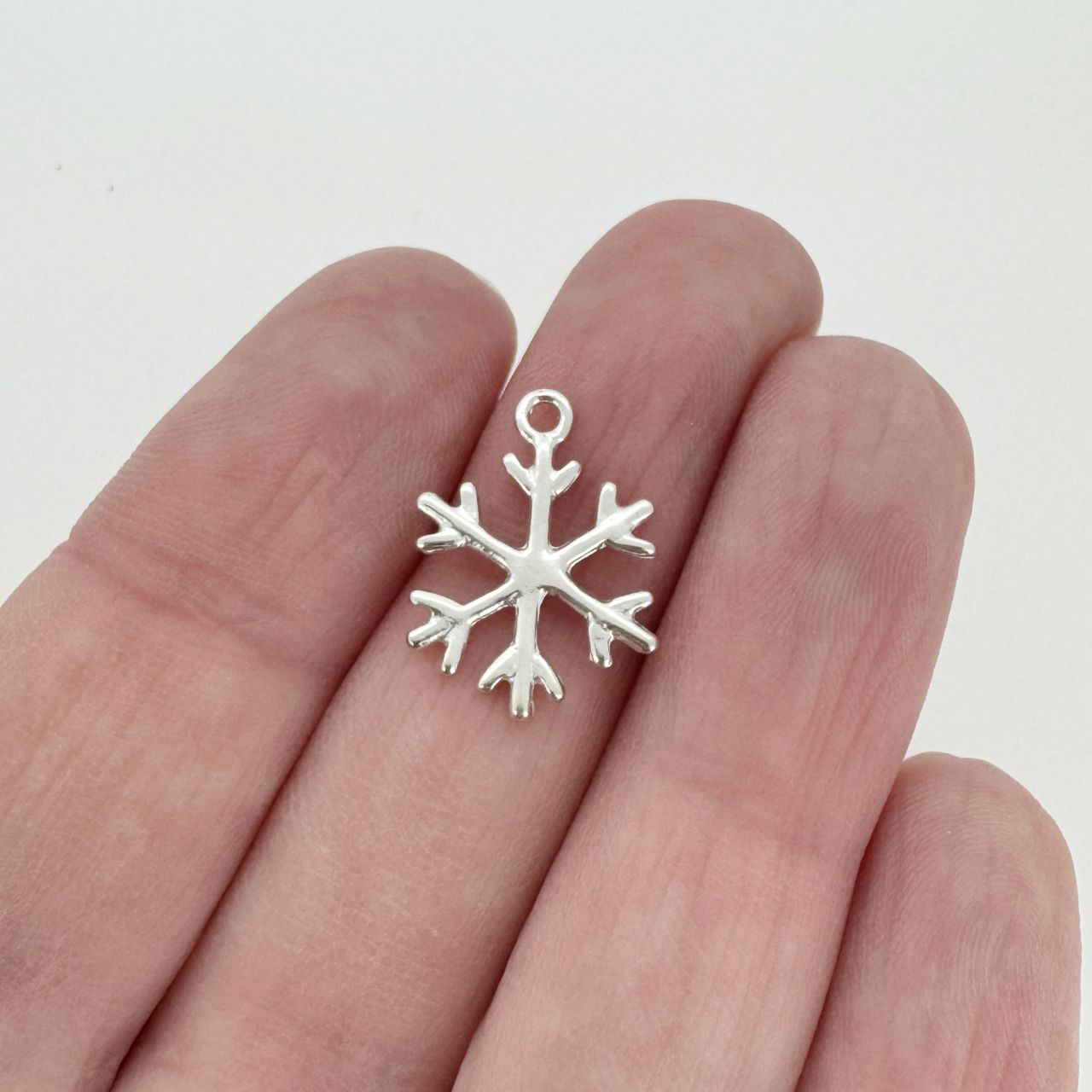 Material: Solid Genuine .925 Sterling Silver. Shape: Snowflake charmMeasurement: 18 mm long, 13 mm wide, 1 mm thickWeight: 0.9 grams per piece.