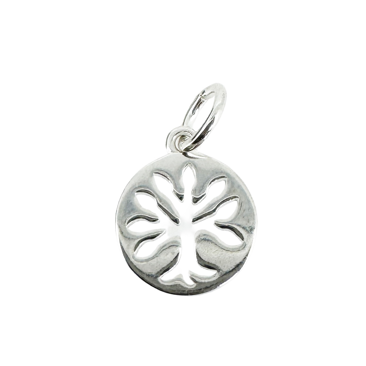 Material: Solid Genuine .925 Sterling Silver. Shape: Round with treeMeasurement: About 9 mm around, 0.7mm thick. Ring is about 5 mm, soldered closed 3 mm inner diameter. Weight: About 0.47 gram per piece.Quantity: 1 charm
