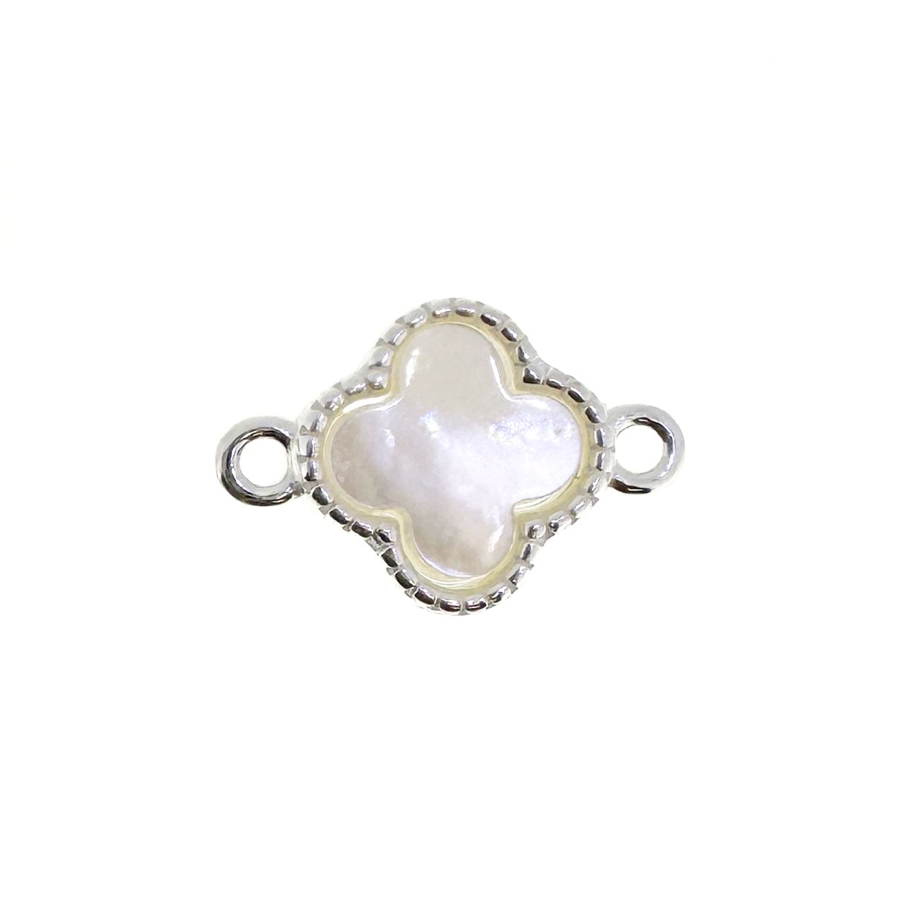 Style: Double Sided Clover Shaped Pearl in a Thick Textured Bezel Setting Charm Size: 7.5mm, 11mm with Ring (0.8mm inner diameter)Quantity: 1 piece.