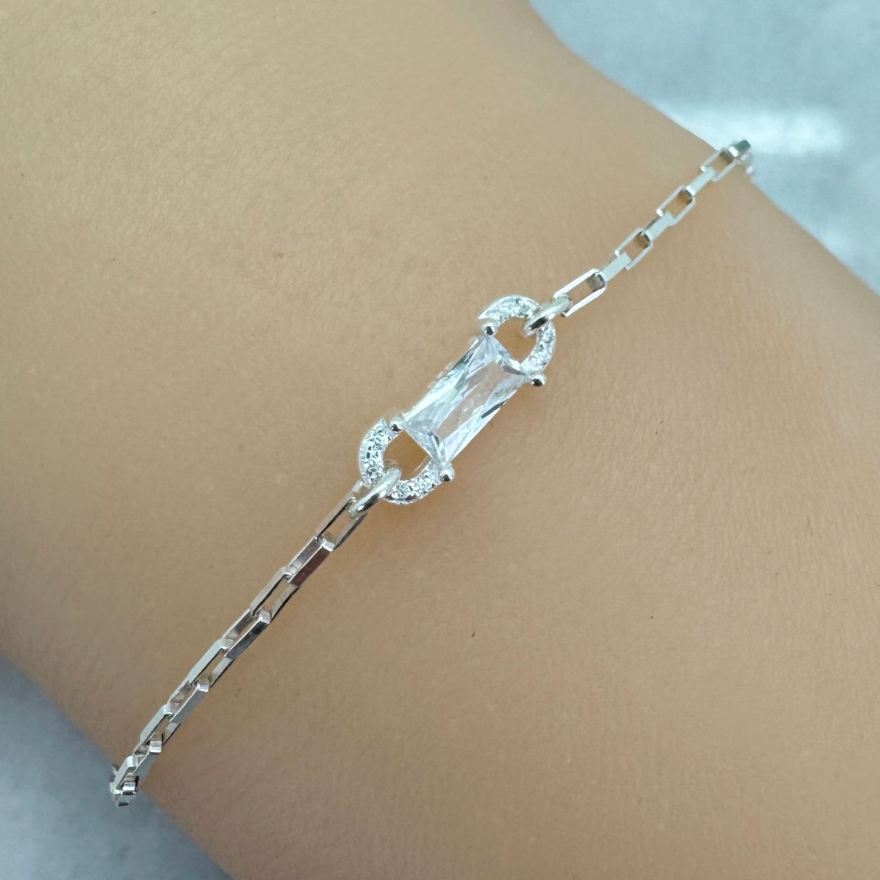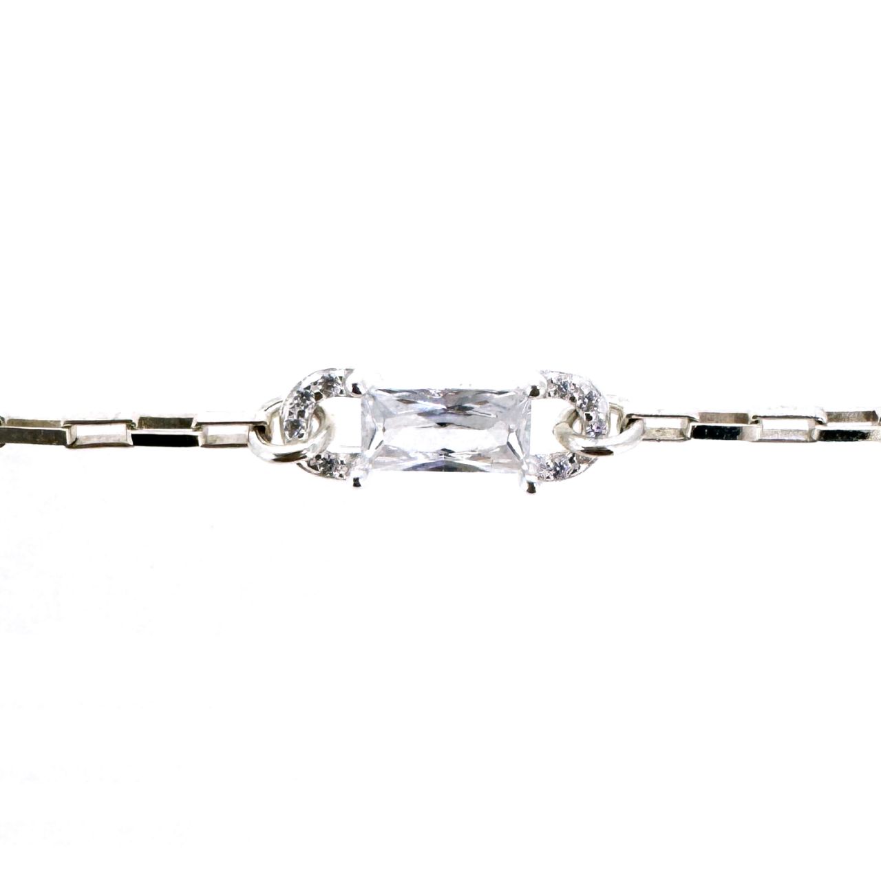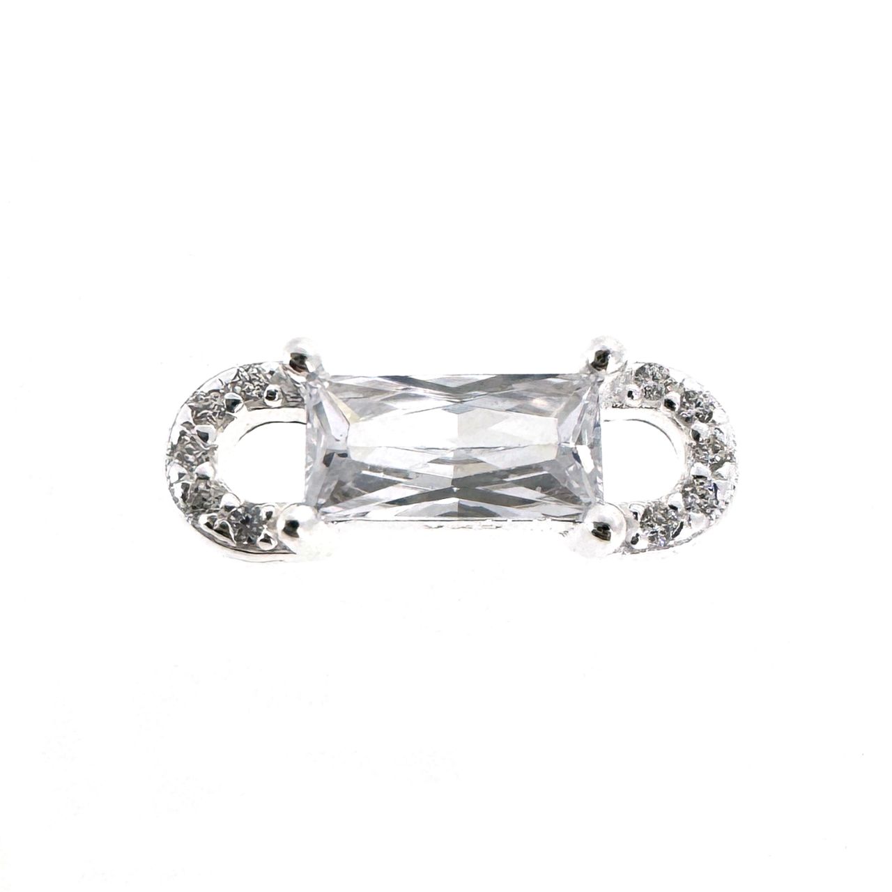 Style: 6mm Baguette cut CZ stone with smaller stones on either end loopCharm Size: 12 x 6mmQuantity: 1 piece.