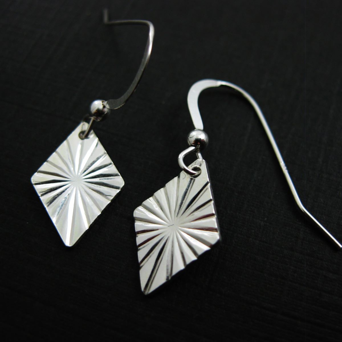 925 Sterling Silver Earrings-Textured Diamond Charm