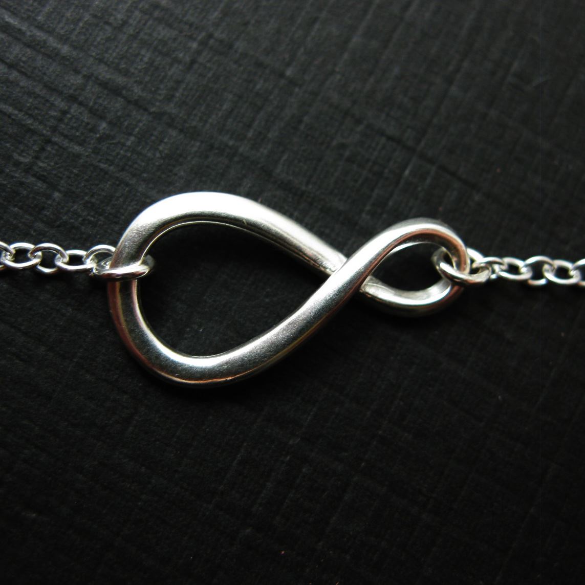 Price: per 1 necklaceMaterial: Solid Genuine .925 Sterling Silver. Description: Figure8 or warped infinity, smooth sterling silver. Tiny plain cable link chain.Length: 16 to 24 inches. If you would like a different length please contact the seller. Charm Measurement: 19mm and 10mm wide