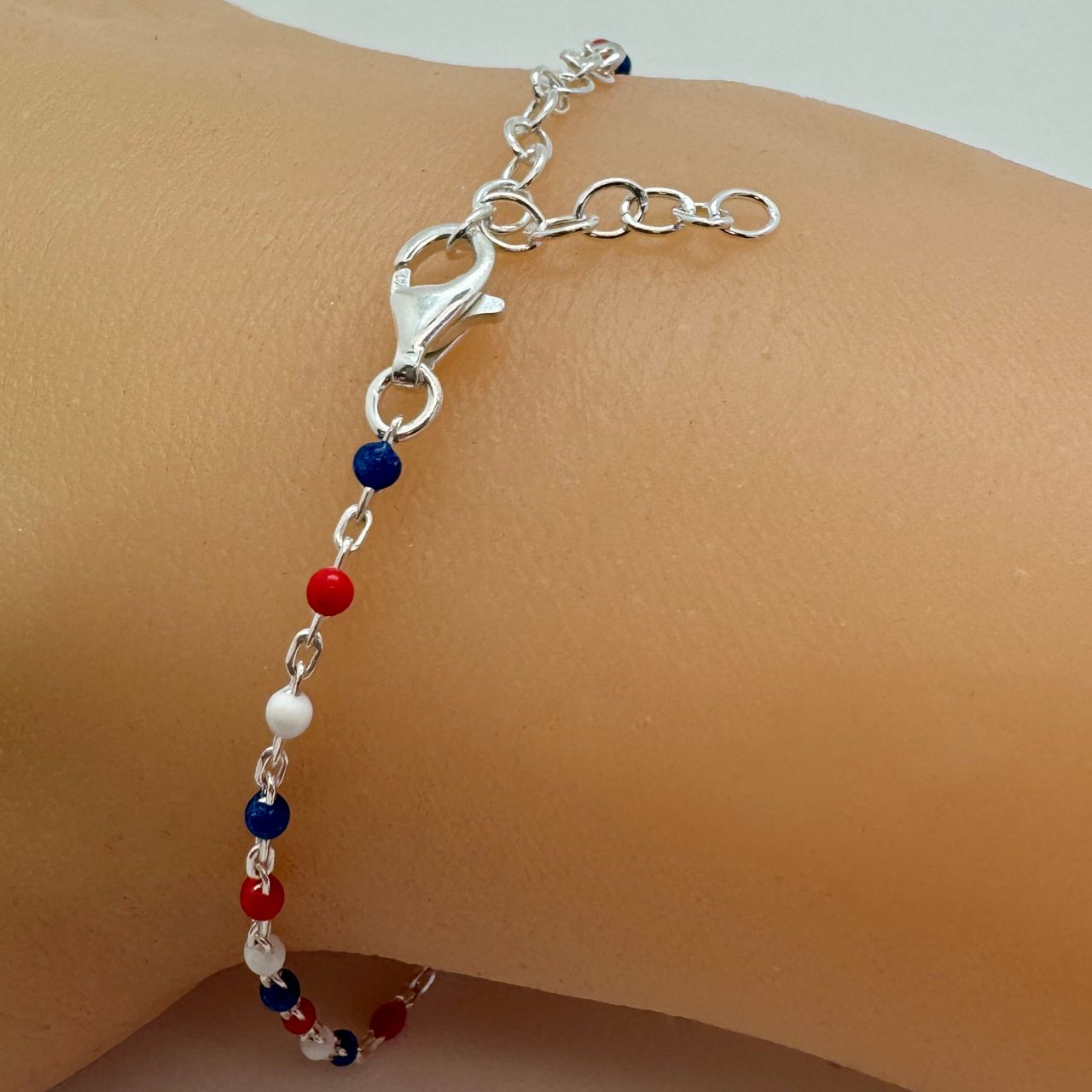 Style: Cable Chain with Red, White and Blue Enamel Links