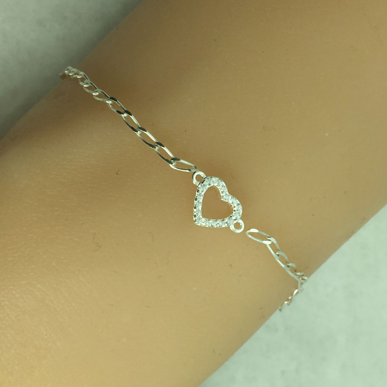 Sterling Silver Heart Charm with CZ stone