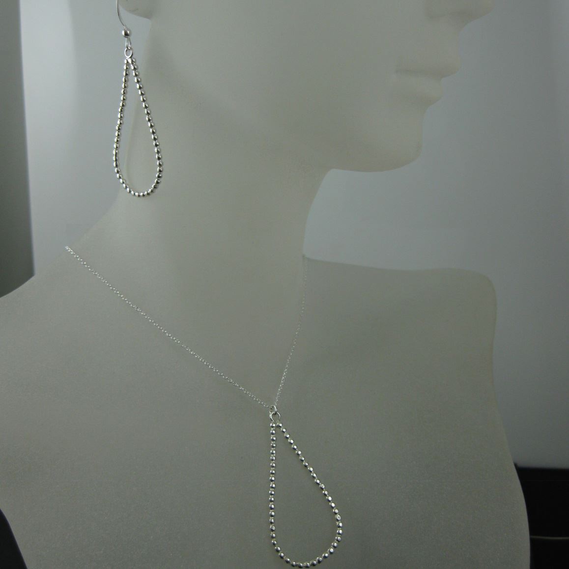 Pendant Description: Tiny connected balls in a tear drop shape.