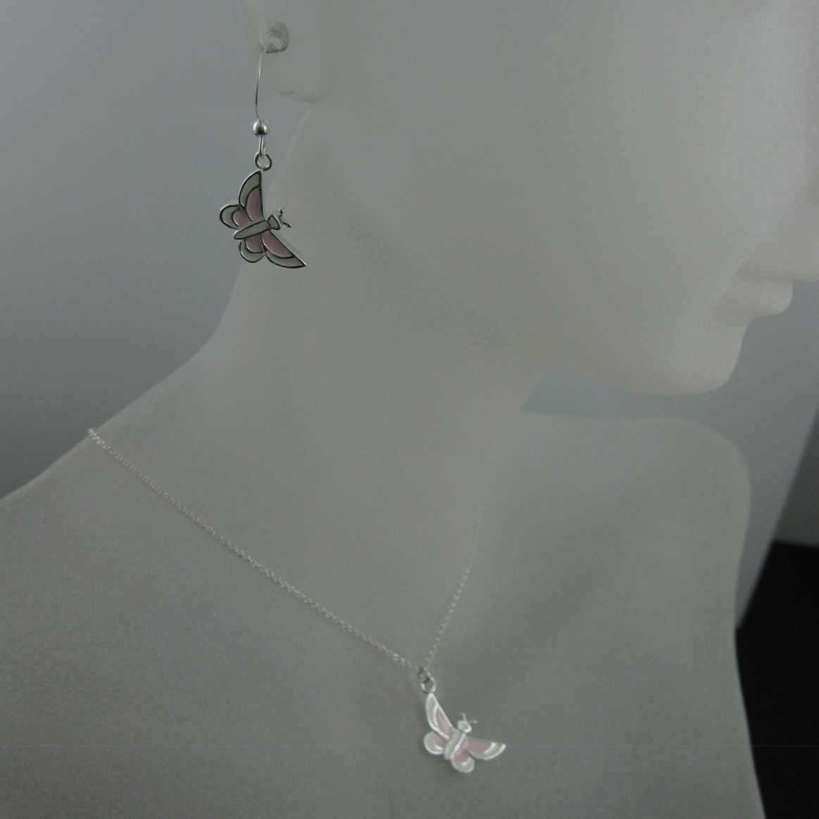 925 Sterling Silver Jewelry Set-White and Pink Butterfly Charm