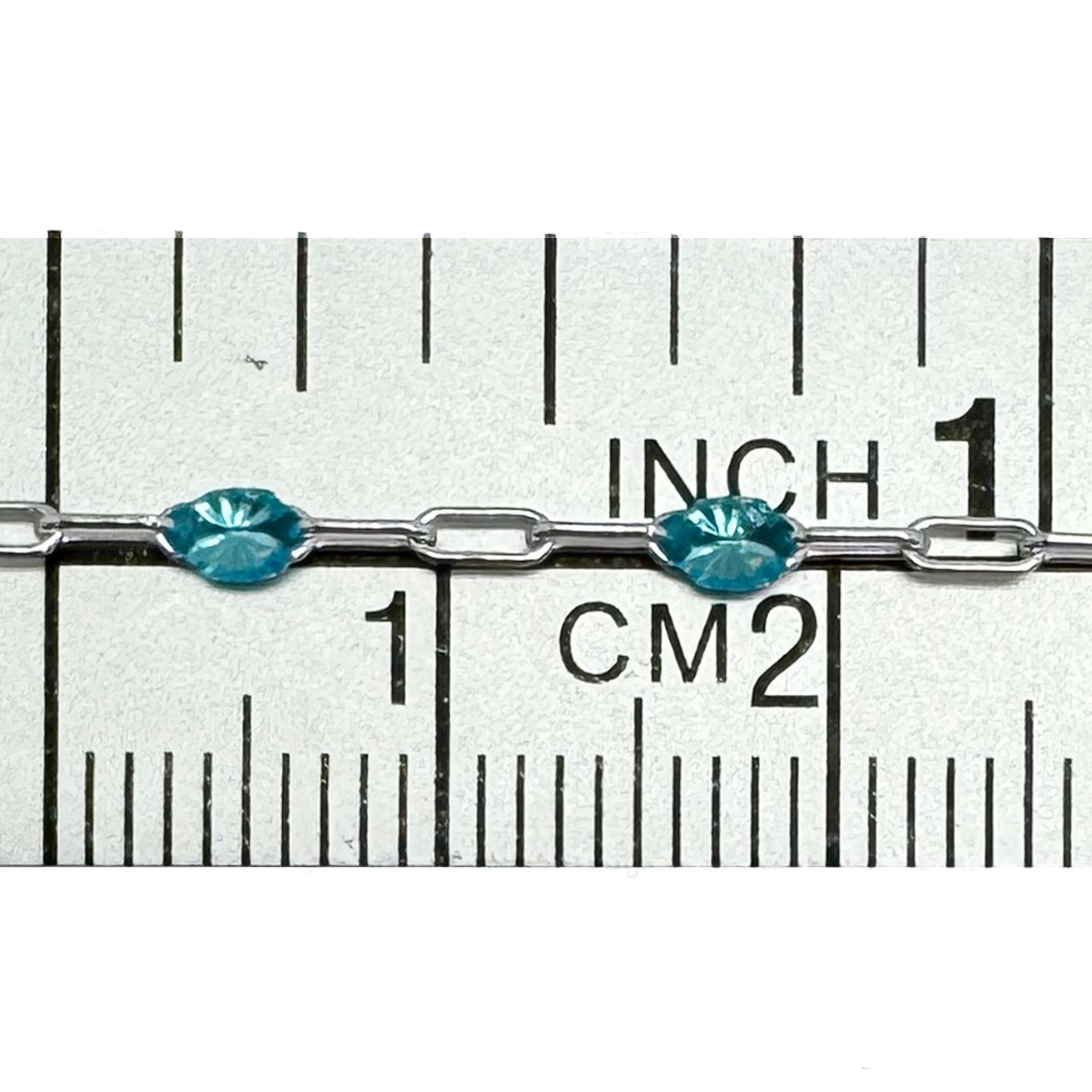 Add to compare list 925 Sterling Silver Long Box -1+3 PaperClip Enamel Chain (Turquoise Color)-4mm by 1.6mm (Sold per foot) SKU : 101079-TUQ Original SKU: 101095 December birthstone turquoise color. 7 links per inch Log In for Wholesale Prices