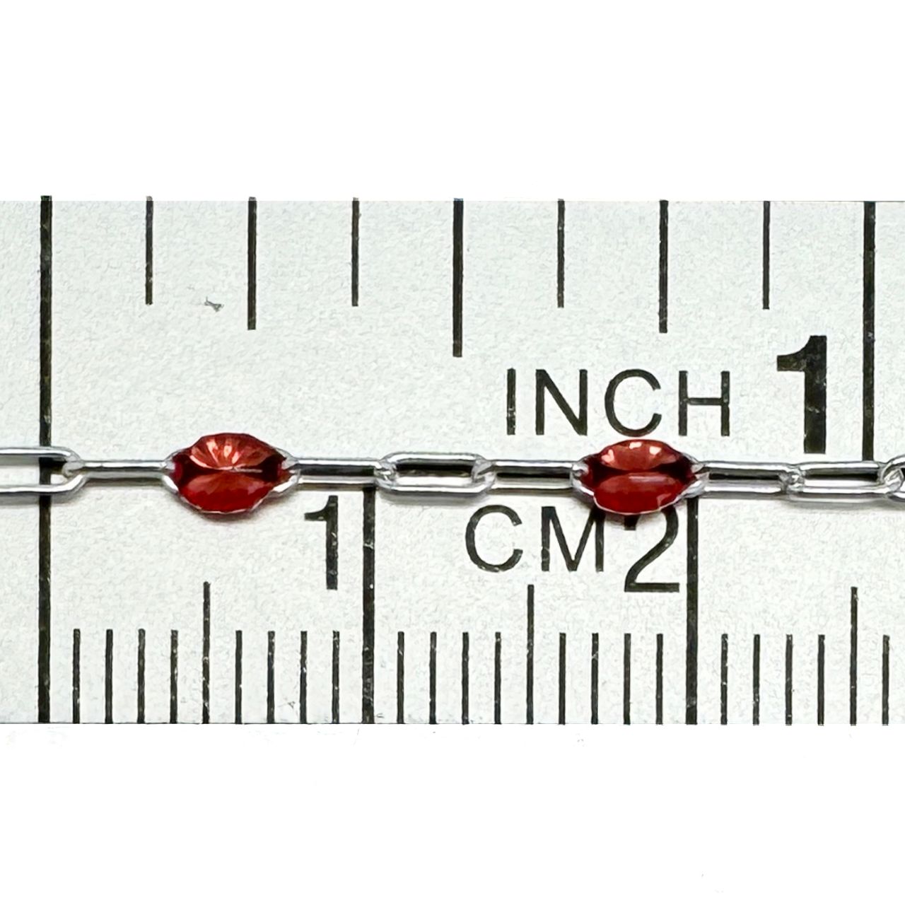 Add to compare list 925 Sterling Silver Long Box -1+3 PaperClip Enamel Chain (Garnet Color)-4mm by 1.6mm (Sold per foot) SKU : 101079-GAR Garnet Enamel January Birthstone Chain 8 links per inch Log In for Wholesale Prices