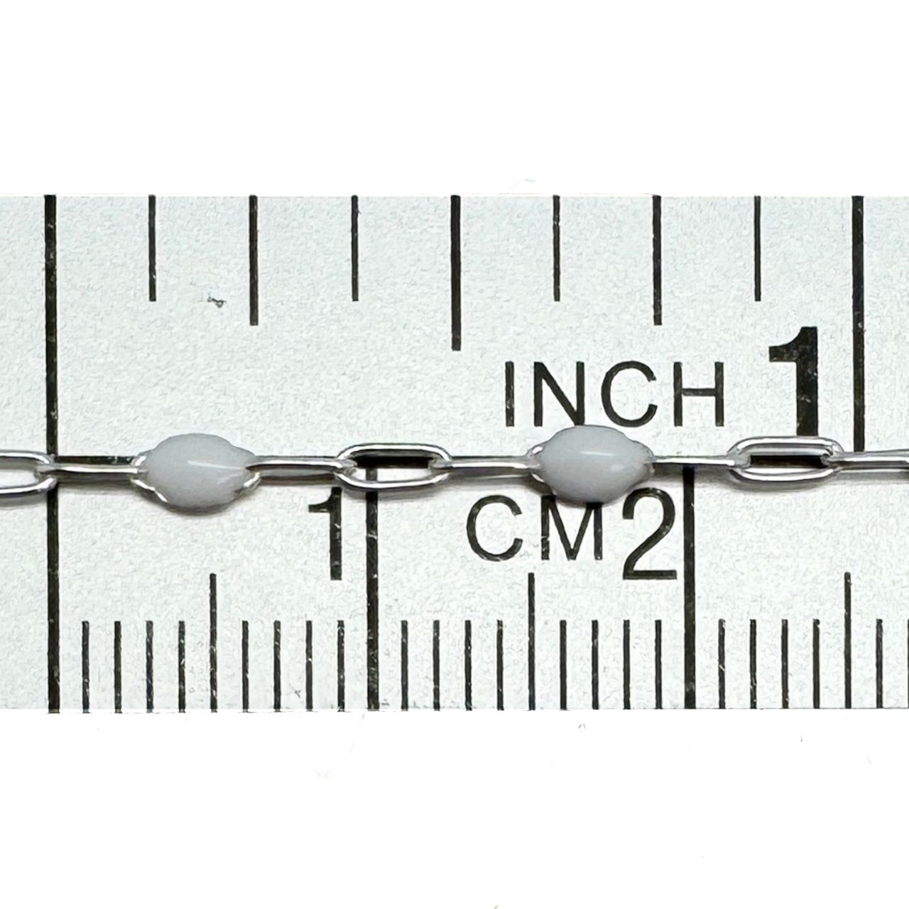 Best Seller Add to compare list 1/20 Gold Filled Long Box - 1+3 PaperClip Enamel Chain (Pearl White Color) - 3.6mm by 1.6mm (Sold per foot) SKU : 101079GF-WHT June Enamel Birthstone Pearl Color Original SKU: 101122-GF Paperclip chain 3.6mm long by 1.6mm wide 8 links per inch Log In for Wholesale Prices