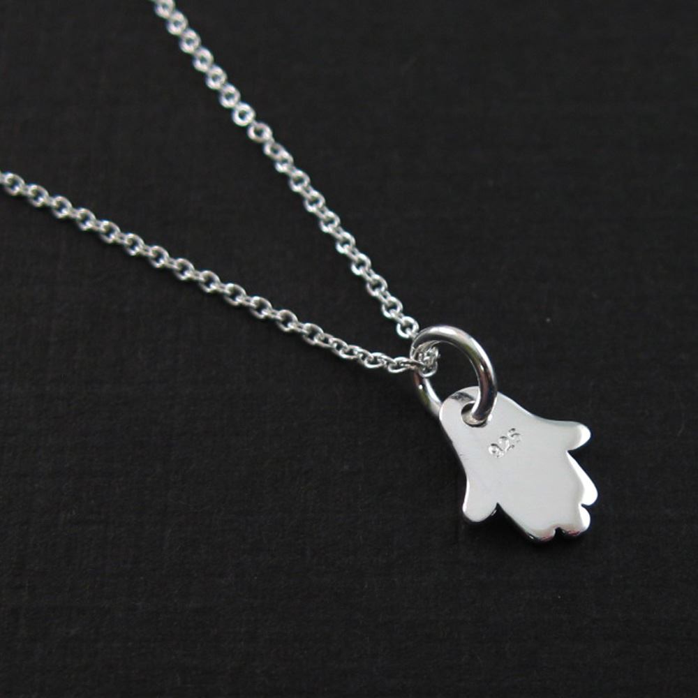 Price: per 1 necklaceMaterial: Solid Genuine .925 Sterling Silver. Description: : Hasma hand charm. "925" mark on the back. Tiny plain cable link chain.Length: 16 to 24 inches. If you would like a different length please contact the seller. Charm Measurement: 25mm long, 20mm long without ring, 8mm wide, 2mm thick.