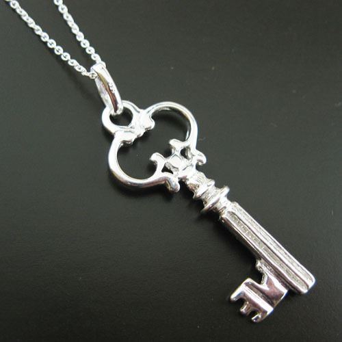 Price: Per 1 necklaceDescription: A large key charm hangs on sterling silver chain, simple and elegant ! Material: Solid Genuine .925 Sterling Silver. Measurement: The key charm is about 35mm long and 13mm wide. The necklace is available in 16-24 inches.