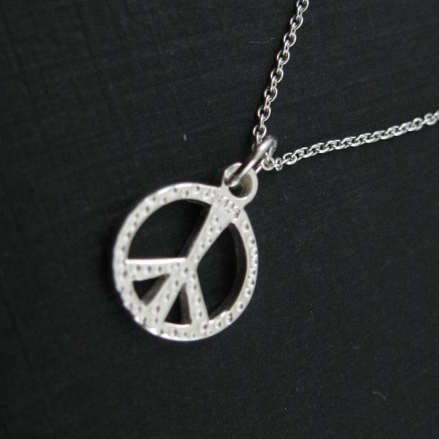 Price: Listing price is for one necklace.Description: A thick peace charm hangs on 925 sterling silver chain, finished with spring ring clasp. Material: All materials are .925 sterling silver. Measurement:The peace charm is about 12 mm and 15 mm with ring, one side is smooth and the other side is textured. Length: 16, 18, 20, 22 and 24 inch. Select your size from "Length" drop down on top of this page.