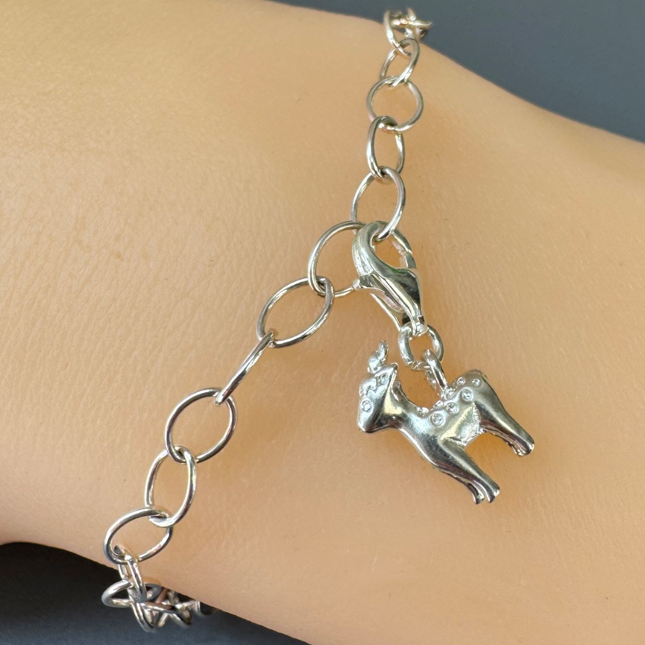 Material: 925 Sterling silver.Style: Cute Reindeer carm with an 8mm lobster claspQuantity: 1 piece.Pictures show the shape, please read the size measurement for actual size.