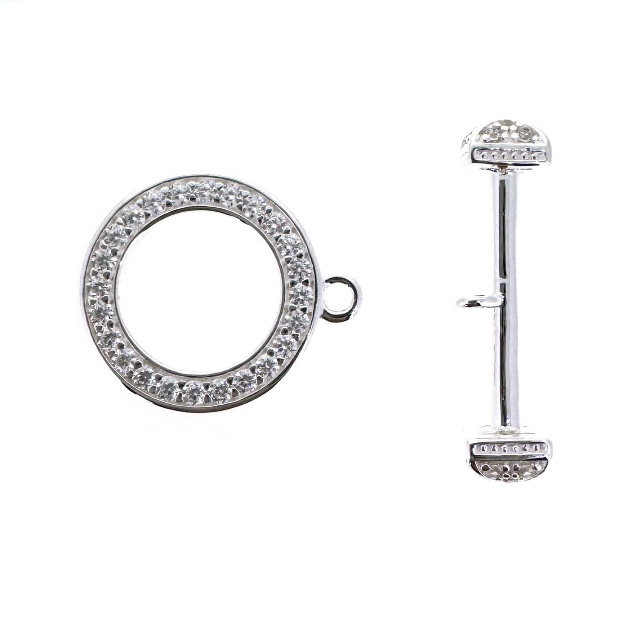 Material: Solid Genuine .925 Sterling Silver from Italy Shape: Round CZ Toggle and Bar - 24 pcs 1mm CZ Stones in Hoop; 12 Stones on either end of the bar.Measurement: Bar is 21mm; Hoop is apporximately 17.5mm with ring - 16mm without. Rings are 3mm Outer Diameter, 1.5mm Inner.