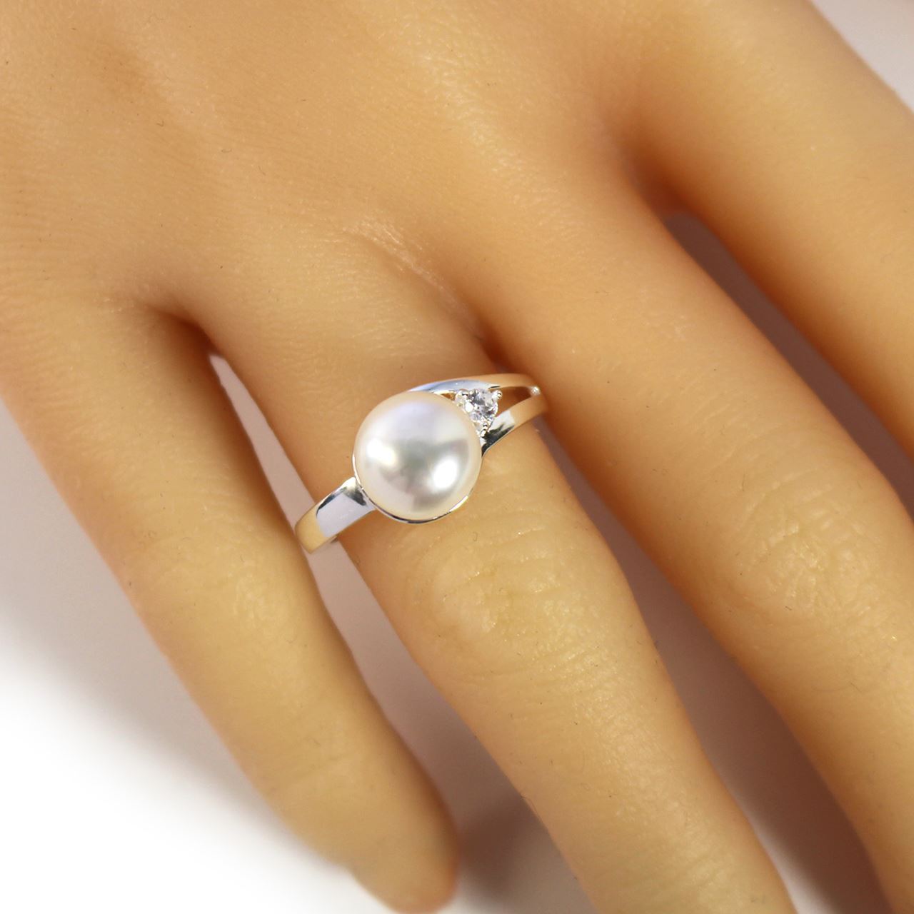 Material: 925 Solid Sterling Silver, CZ StoneStyle: Freshwater Pearl, CZ Stone RingPearl: Cultured White Freshwater Pearl 9mmMeasurement: Band is 2mm at smallest width, 3mm at widest spotRing Size: 7Quantity: Sold per piece
