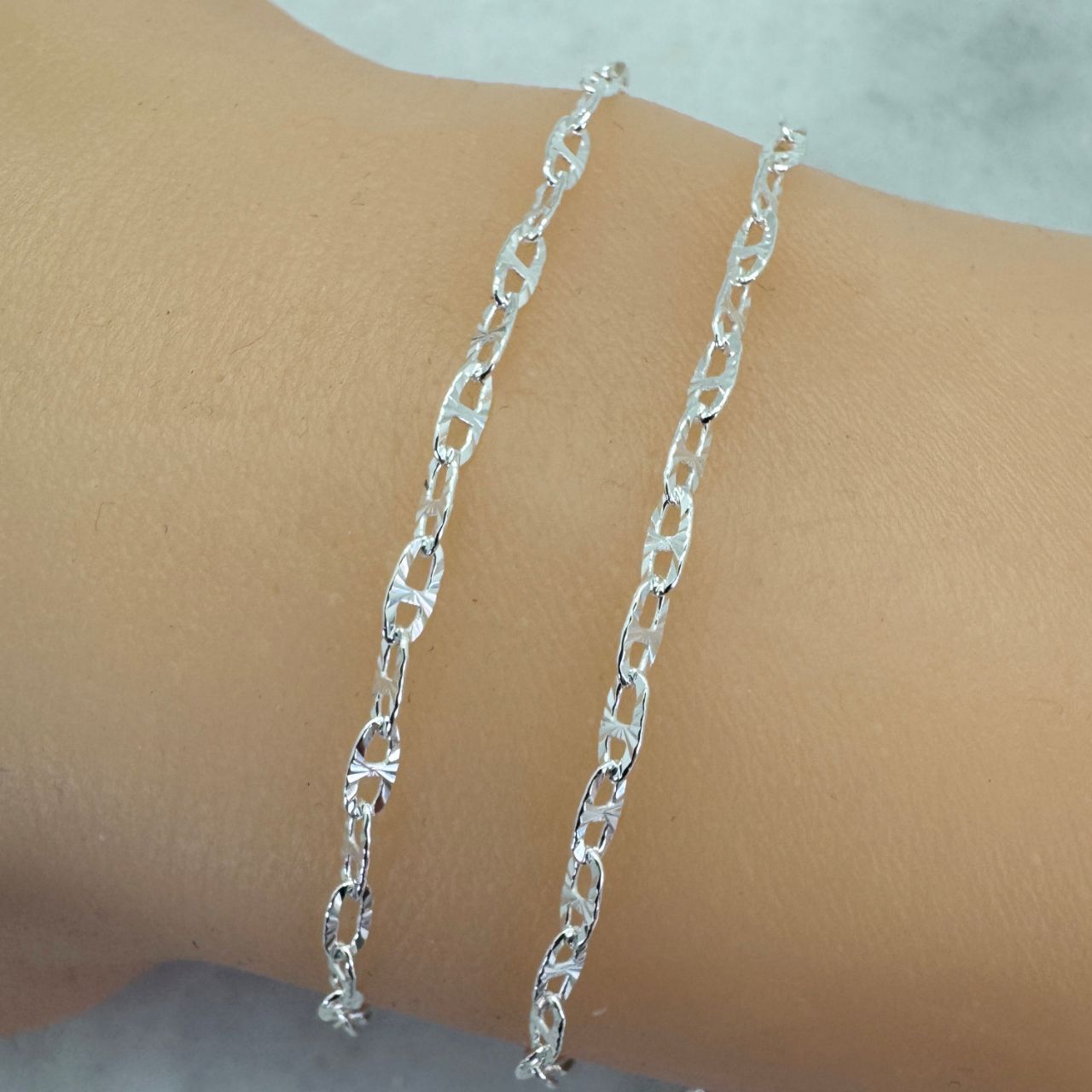 Add to compare list 925 Sterling Silver Finished Jewlery Chain - Textured Marina Link Chain SKU : 601121 Available Lengths: 7" - 36" Log In for Wholesale Prices