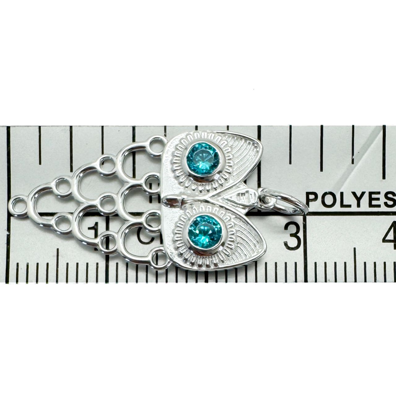 Style: Owl Silhouette With Blue CZ Eyes - Closed RingCharm Size: 27mm x 14mm wide - 22 Gauge 5mm Closed RingQuantity: 1 piece.