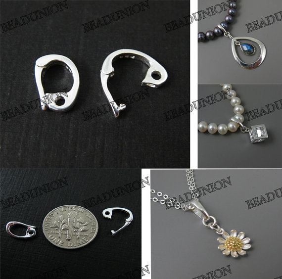 Material: Gold over 100% Solid Genuine .925 Sterling SilverShape: Clip-on bail, smooth surface, long classic style. "925" mark on the inside. Size: 10mm long, about 2mm wide, 1mm thick. The hole will fit up to 18 Gauge rings/wire. Weight: 0.76 grams / pieceQuantity: 1 piecePictures show the shape of the product, for actual size, please read the measurement.