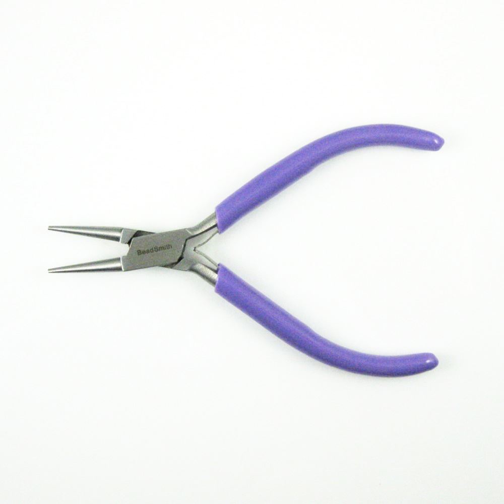 This is one of Beadsmith's most popular tool lines - medium-duty purple handled wire-working tools. 4.5 inches, purple PVC grip, double-leaf spring, and economy precision quality. Additional features: Polished steel head, Double-leaf spring for smooth operation, Box joint construction, PVC handles. Round nose pliers are used to curl, coil, and shape wire into loops and circles.