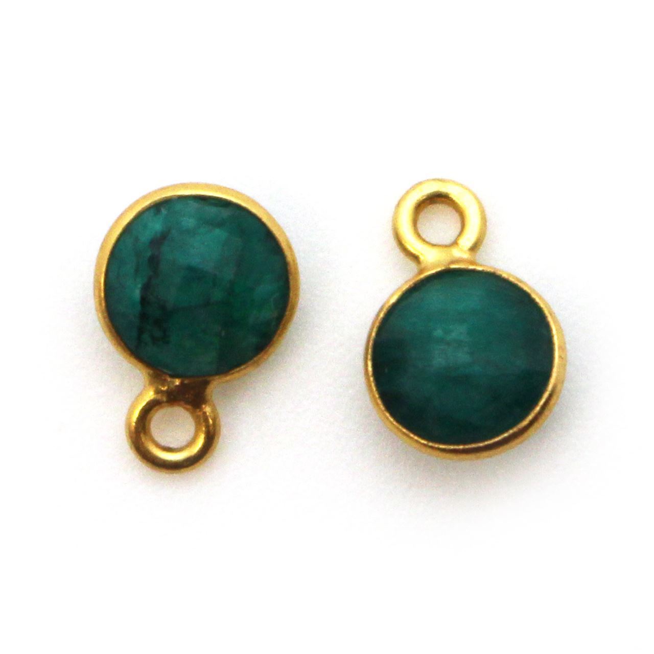 Stone: Emerald DyedFrame Material: Gold Plated Solid Genuine .925 Sterling Silver. Shape: Tiny Faceted Circle Shape on both sides. Measurement: 7mm, 10mm with hoop, stone size is 6mm. Weight: Ave. 0.3gmsQuantity: 1pc