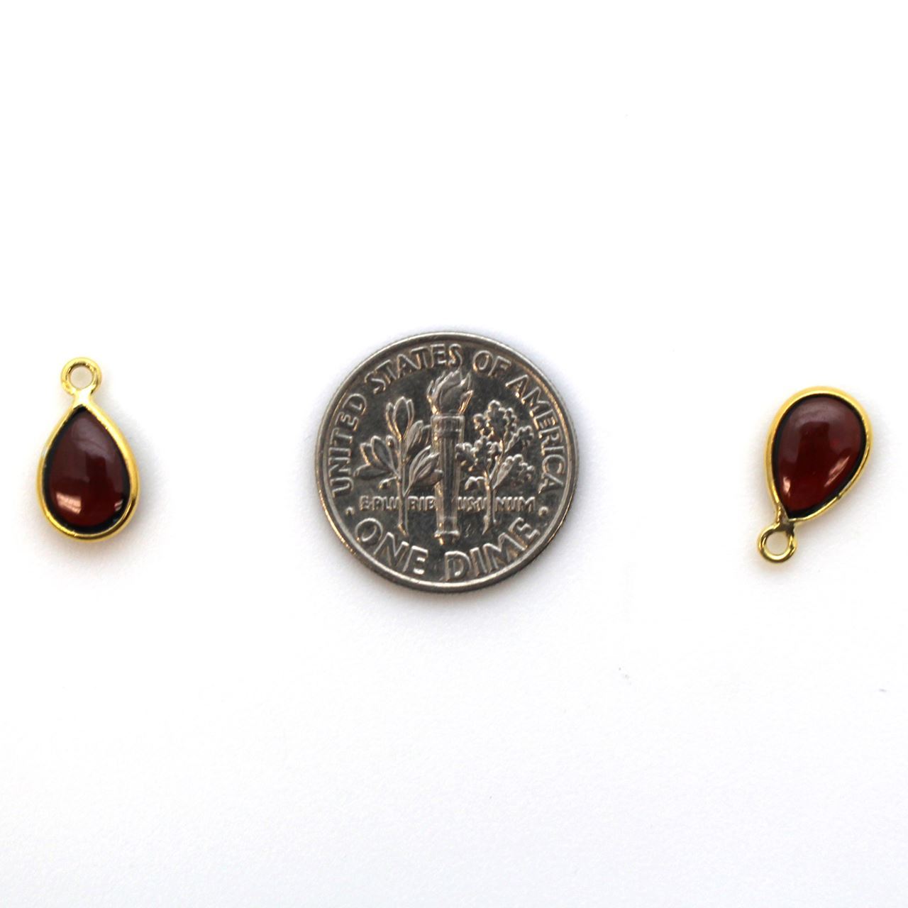 Natural Stone: GarnetFrame Material: Gold Plated Solid Genuine .925 Sterling Silver. Shape: TeardropMeasurement: 7mm wide, 12.5mm long, stone size is 9x6mmRing: 1mm inner diameterQuantity: 1pc