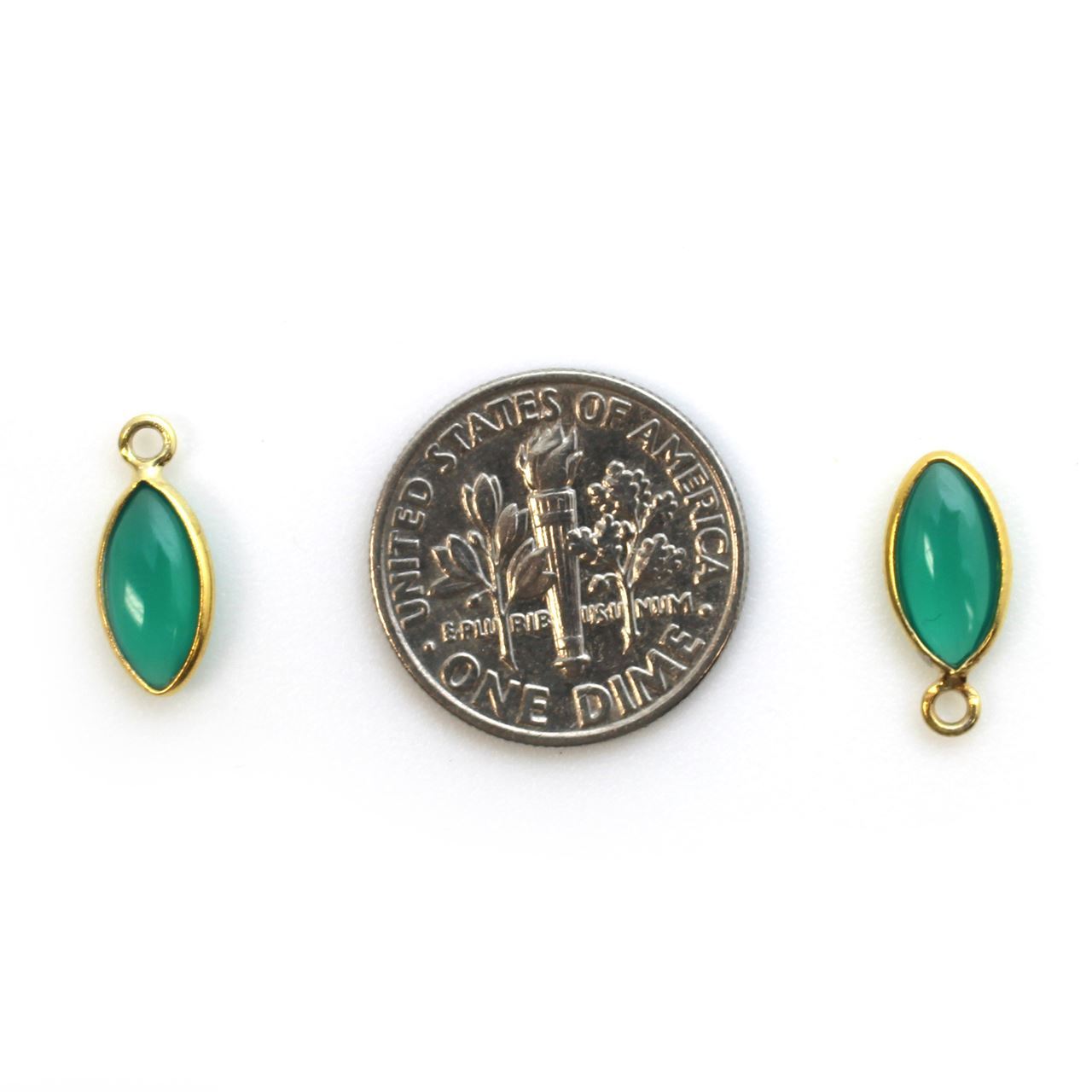 Natural Stone: Green OnyxFrame Material: Gold Plated Solid Genuine .925 Sterling Silver. Shape: Tiny Marquise. Measurement: 6mm wide, 13mm long, stone size is 5x10mmQuantity: 1pc
