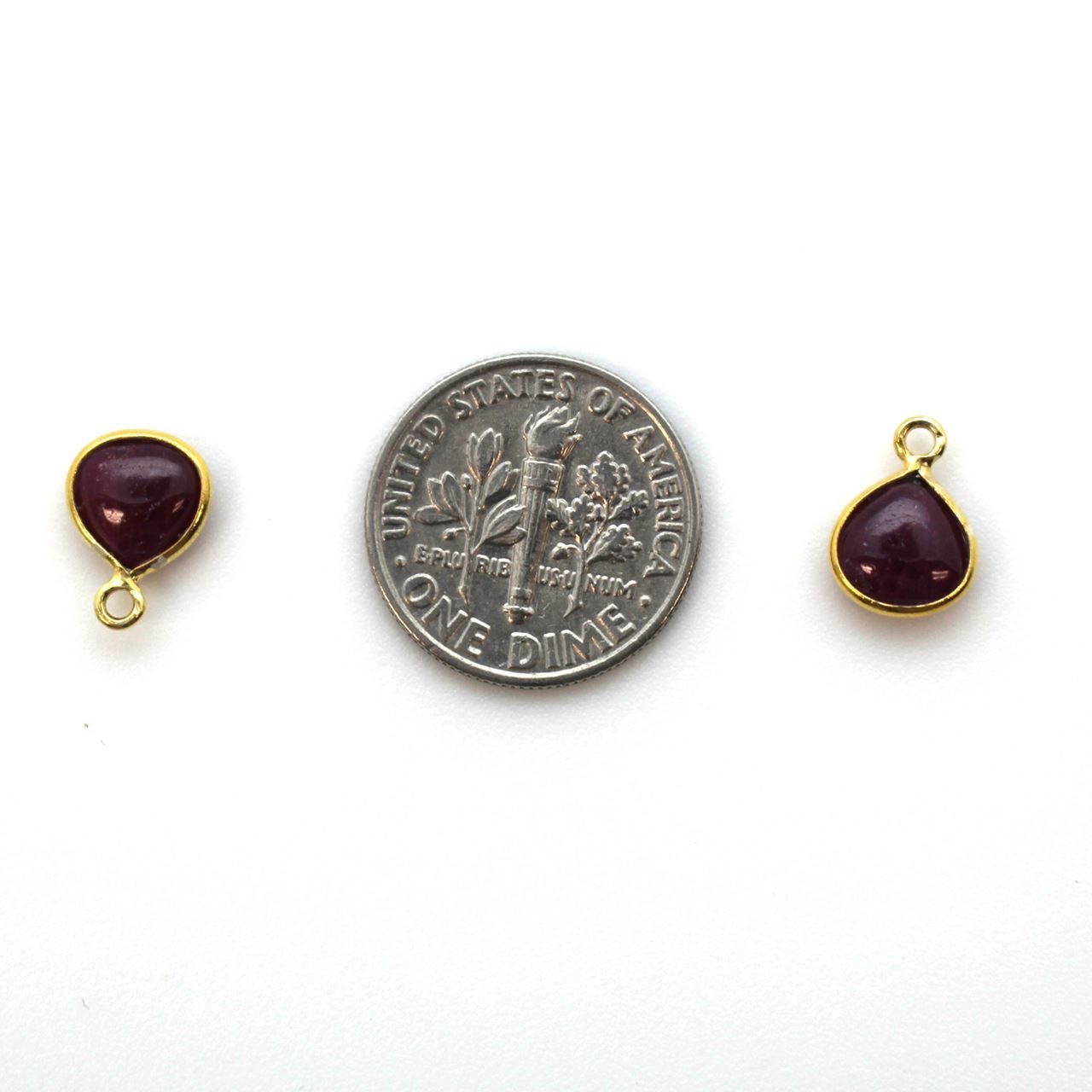 Natural Stone: RubyFrame Material: Gold Plated Solid Genuine .925 Sterling Silver. Shape: HeartMeasurement: 7.7mm wide, 10.8mm long, stone size is 7mmRing: 1mm inner diameterQuantity: 1pc