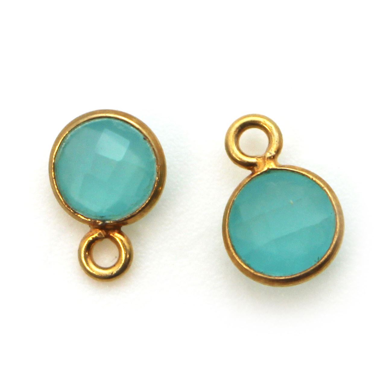 Stone: Peru ChalcedonyFrame Material: Gold Plated Solid Genuine .925 Sterling Silver. Shape: Tiny Faceted Circle Shape on both sides. Measurement: 7mm, 10mm with hoop, stone size is 6mm. Weight: Ave. 0.3gmsQuantity: 1pc