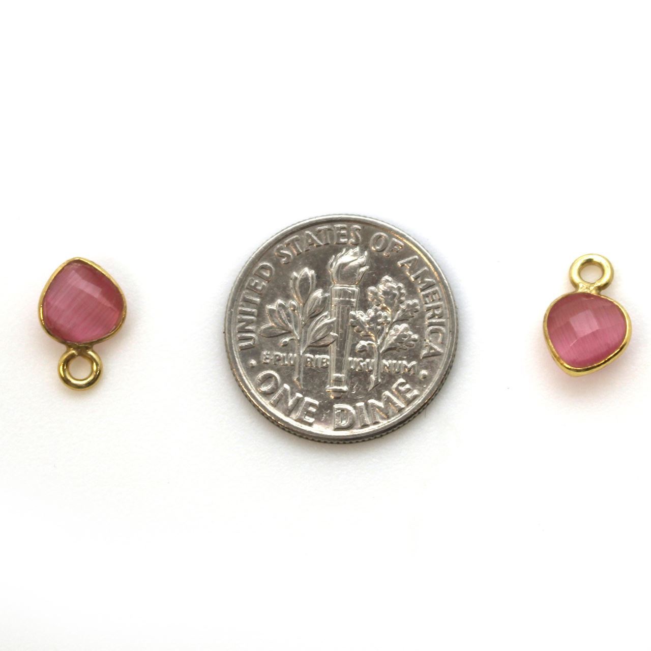 Stone: Pink MonalisaFrame Material: Gold over Solid Genuine .925 Sterling Silver. Shape: Tiny Faceted Heart Shape on both sides. Measurement: 10mm long, 7mm wide, stone size is 5.5x6mm. Weight: Ave. 0.3gmsQuantity: 1pc