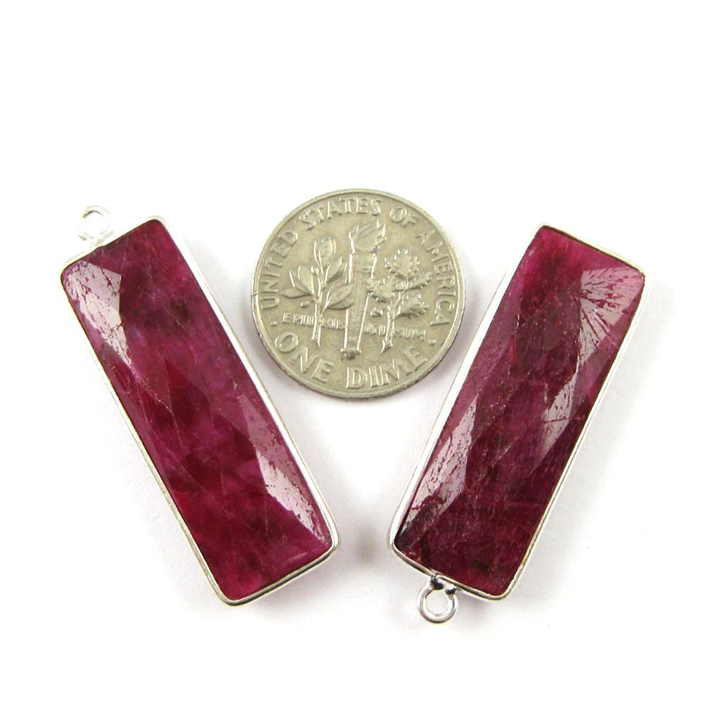 Stone: Ruby Dyed - Dyed RopadaFrame Material: Solid Genuine .925 Sterling Silver. Shape: Faceted pear shape on both sides. Measurement: 34mm long 11mm wide, stone size is 30x10mm. Weight: Ave. 3.3 grams per piece.Quantity: 1 pc