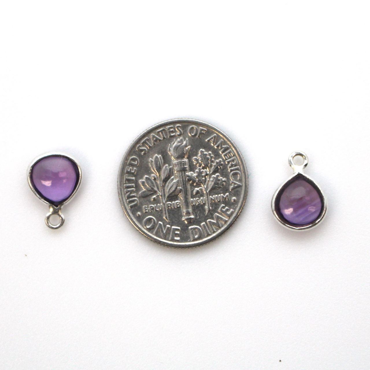 Natural Stone: AmethystFrame Material: Solid Genuine .925 Sterling Silver. Shape: HeartMeasurement: 7.7mm wide, 10.8mm long, stone size is 7mmRing: 1mm inner diameterQuantity: 1pc