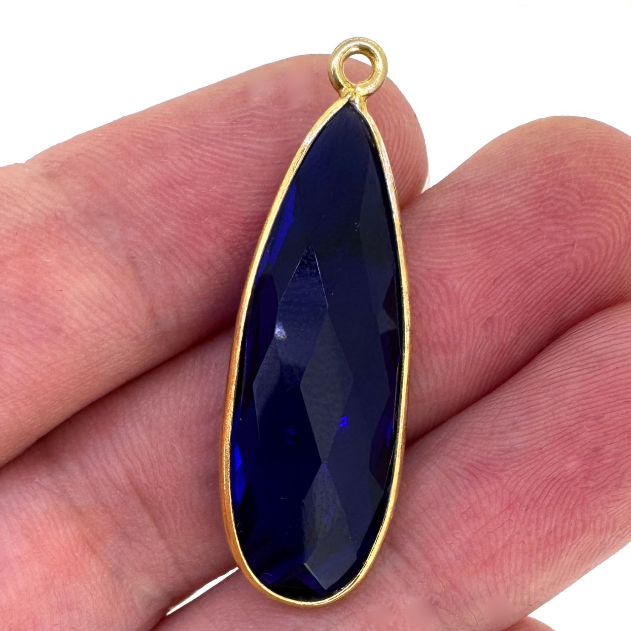 Add to compare list Gold Over Sterling Silver Bezel Charm Pendant - 34x11mm Elongated Teardrop - Aqua Quartz - March Birthstone SKU : 201105-AQR Log In for Wholesale Prices