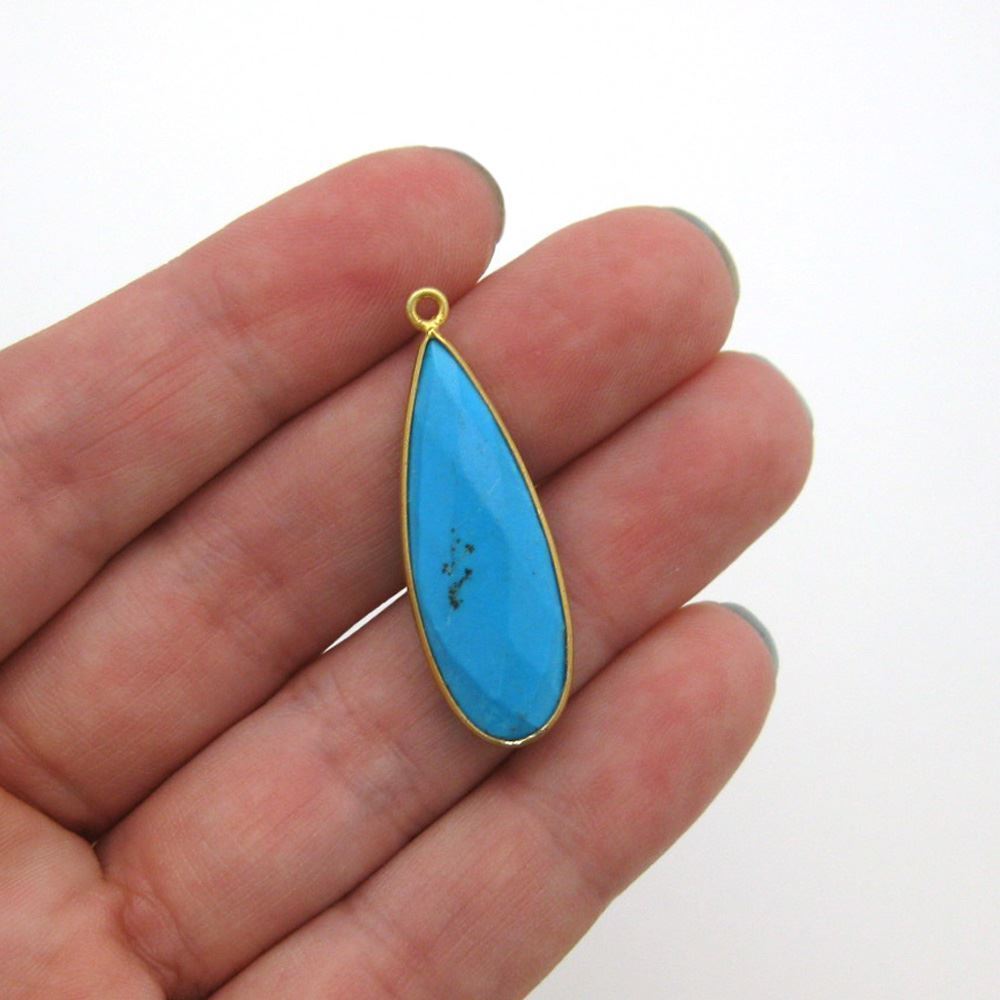 Add to compare list Gold Over Sterling Silver Bezel Gemstone Pendant - 13x18mm Faceted Pear Shape - Turquoise SKU : 201101-TUQ Log In for Wholesale Prices