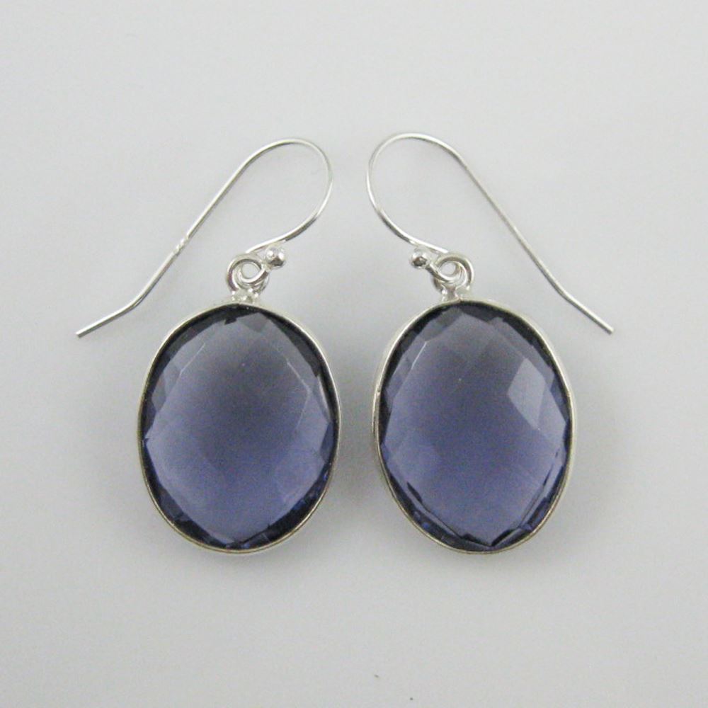 Bezel Gem Oval Pendant Necklace & Earrings - Sterling Silver-Iolite Quartz (16-24")